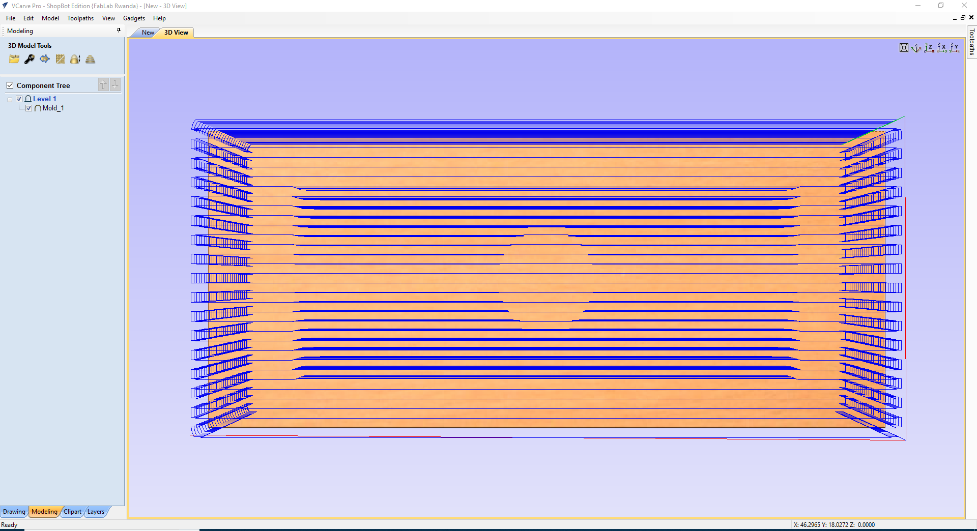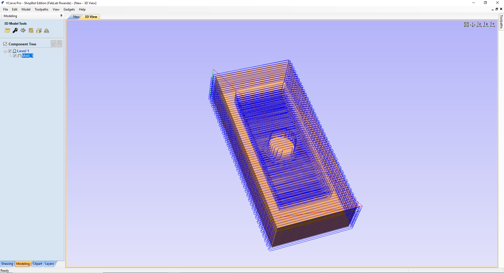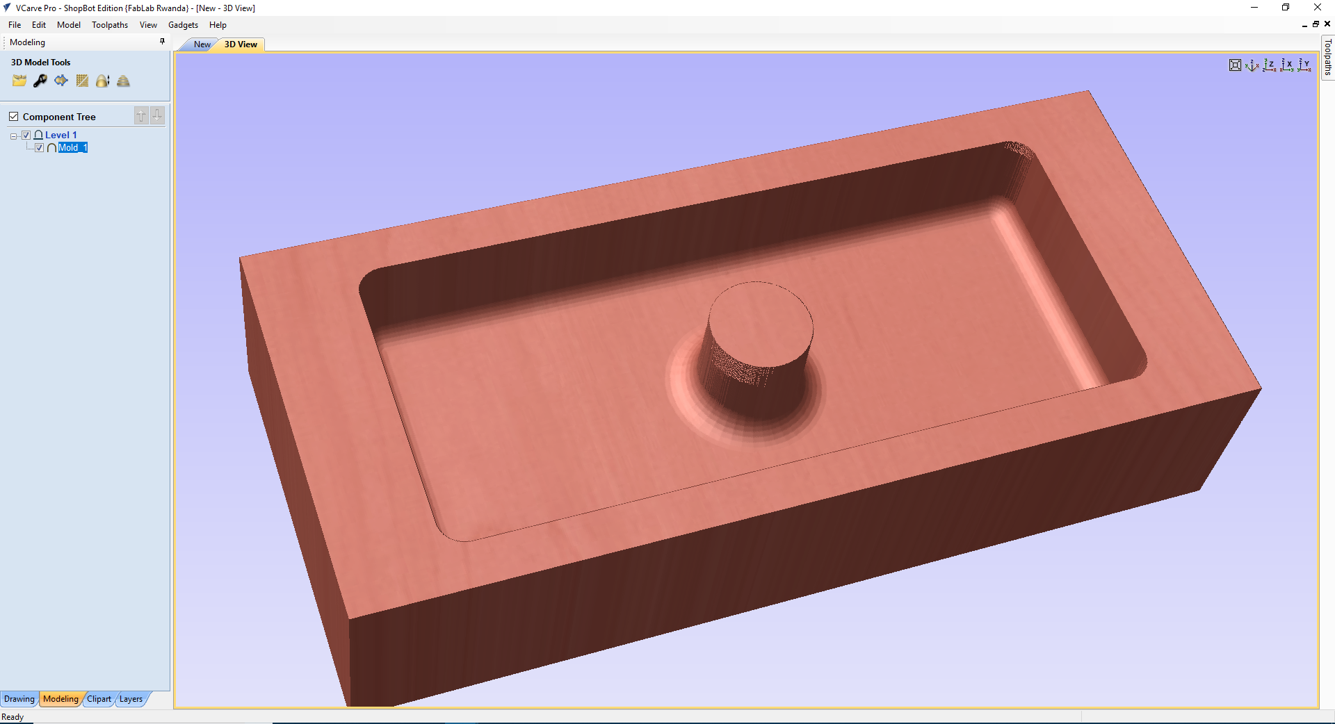 After design the mold by using software design like solidWorks i try to make 3D Roughing in Vcalve and shopBot in order to complete my assignment.