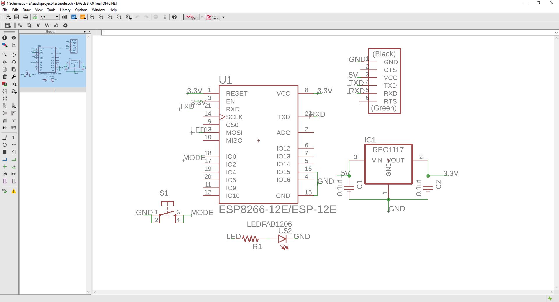 Here i try to design schematic ciruit of ESP-12E in eagle software. After i generate ciruit board in order to print PCB board. for complete my Weekly assignment.