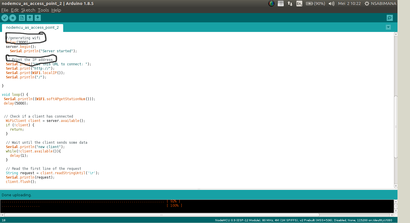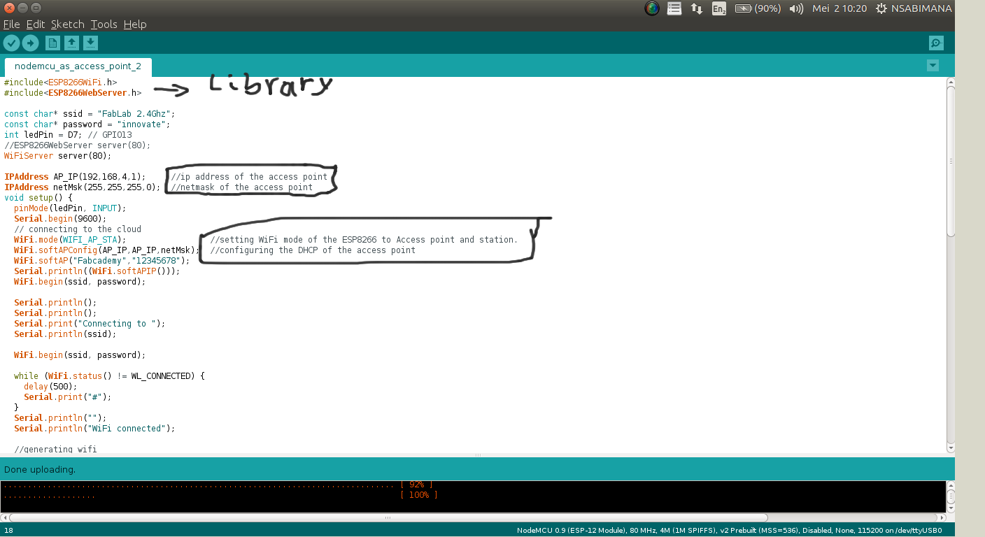 On this images below i try to show the library ESPWebServer, Ip address of acces point and configuration of DHCP protocaly.