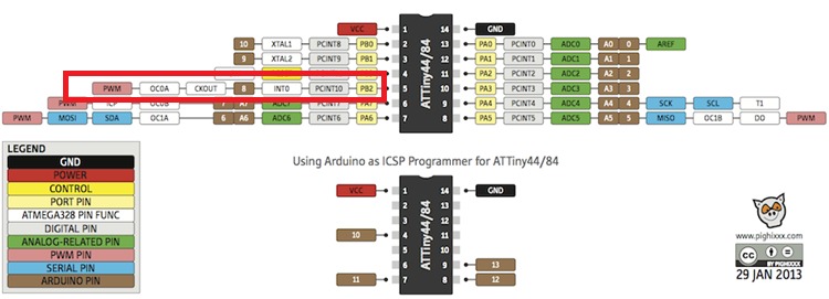 They are controlled via a single Pin as soon as it is a PWM pin.So,once I decided to use an ATtiny44,I checked which pin should i used :