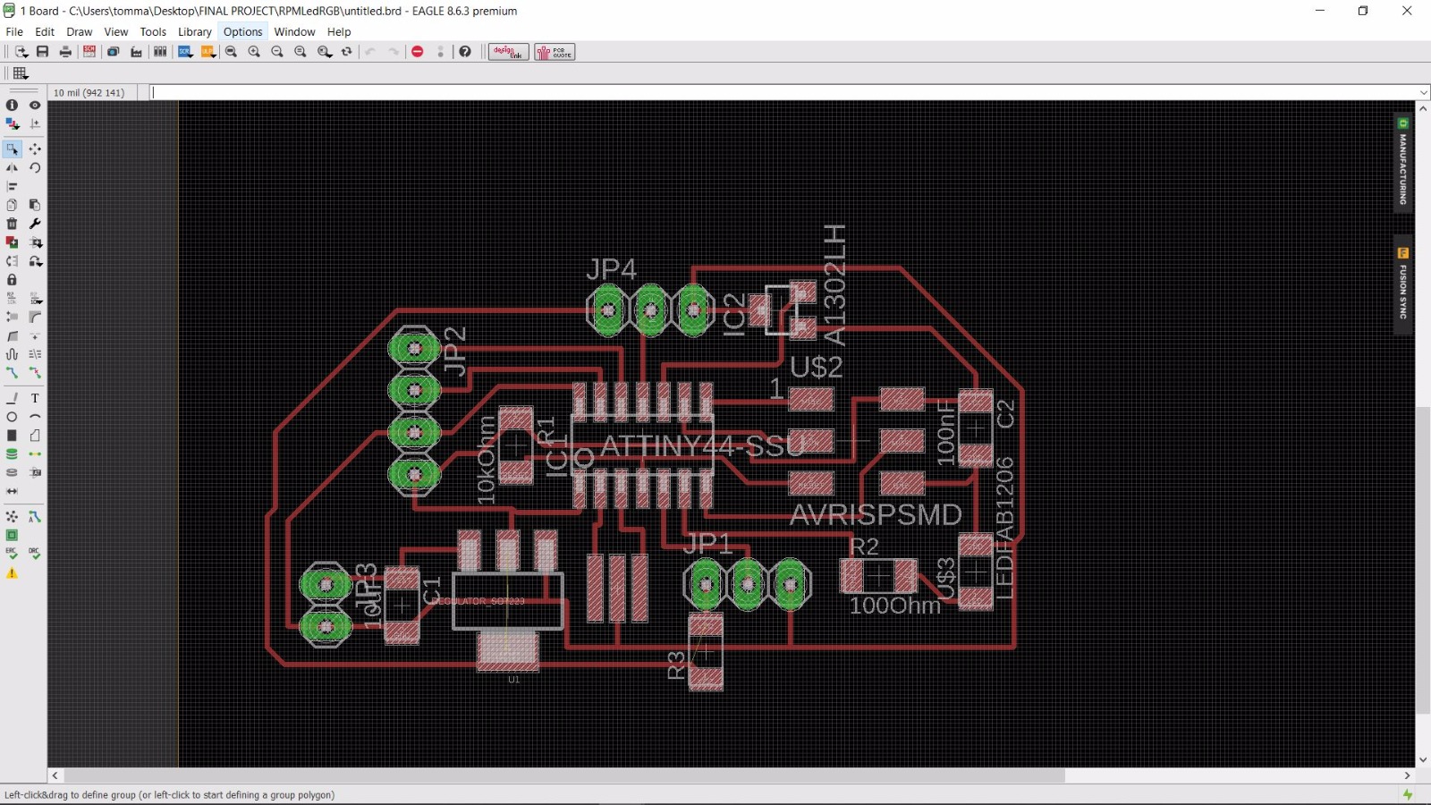 For this week assignment I learned how to control Adafruit NeoPixel Digital RGB LED StripBefore starting to design the board, I read the documentation AdaFruit provides,to understand what it needs to do his work correctly.