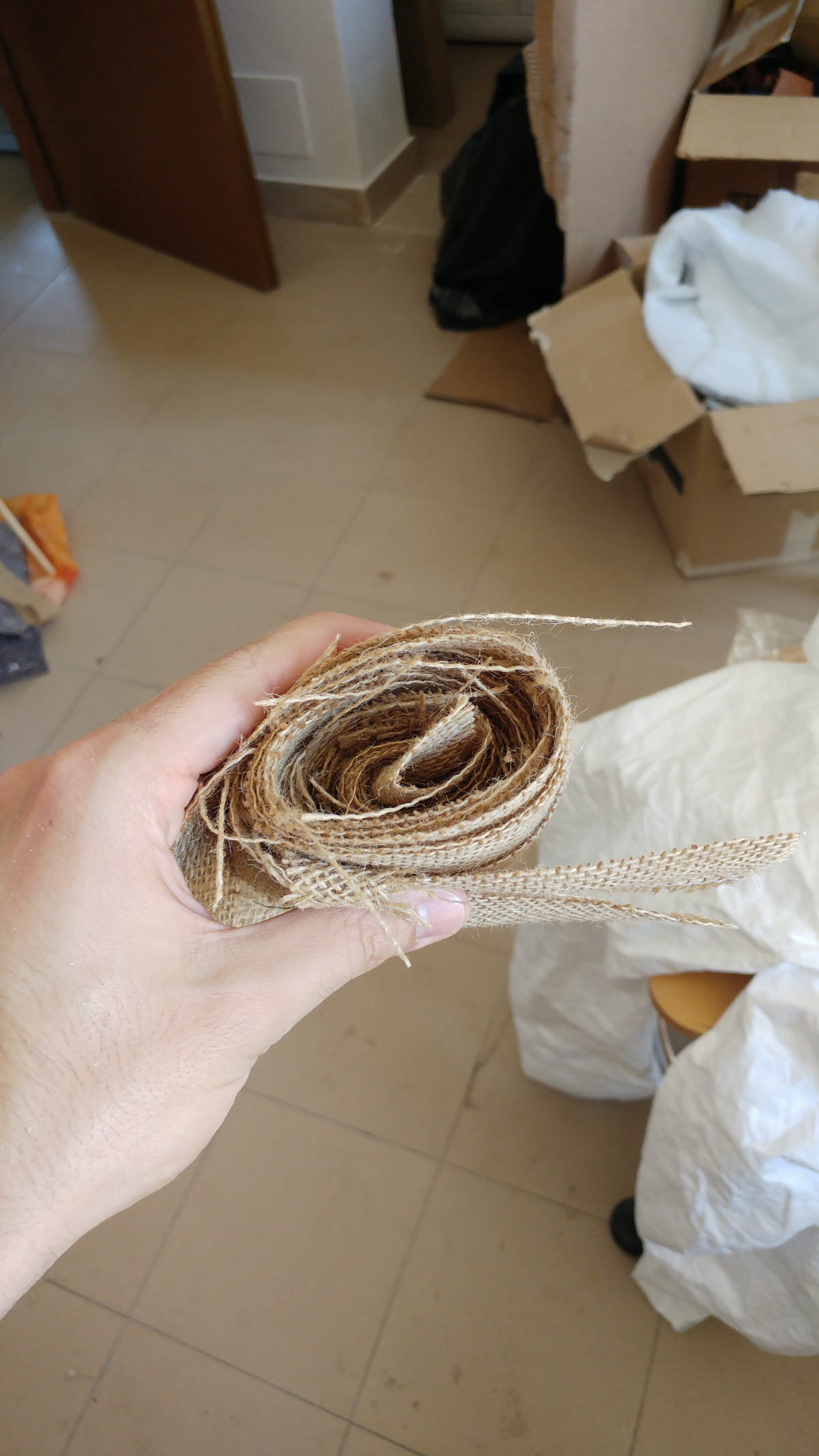 I cutted the jute in thin stripes and gathered them all together :