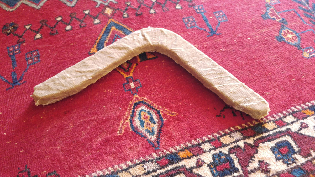 Once I did that I placed the boomerang in the realese fabric I prepared before (see 3 images above),and covered it whit (once again but in the upper part)