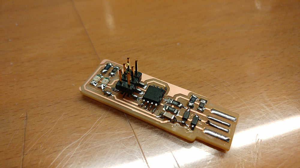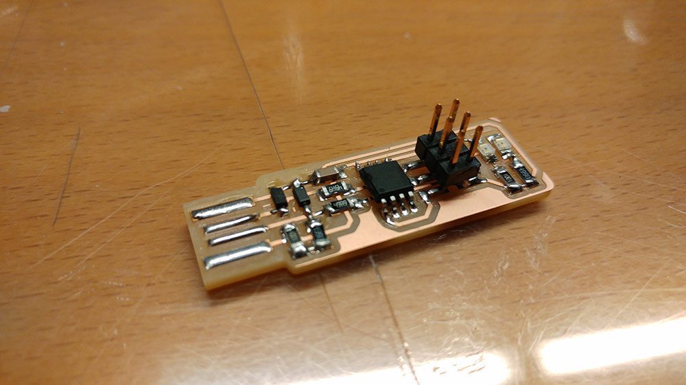 I followed the advice of Brian and the first component I soldered was the ATtiny45. And there is my final ISP programmer: