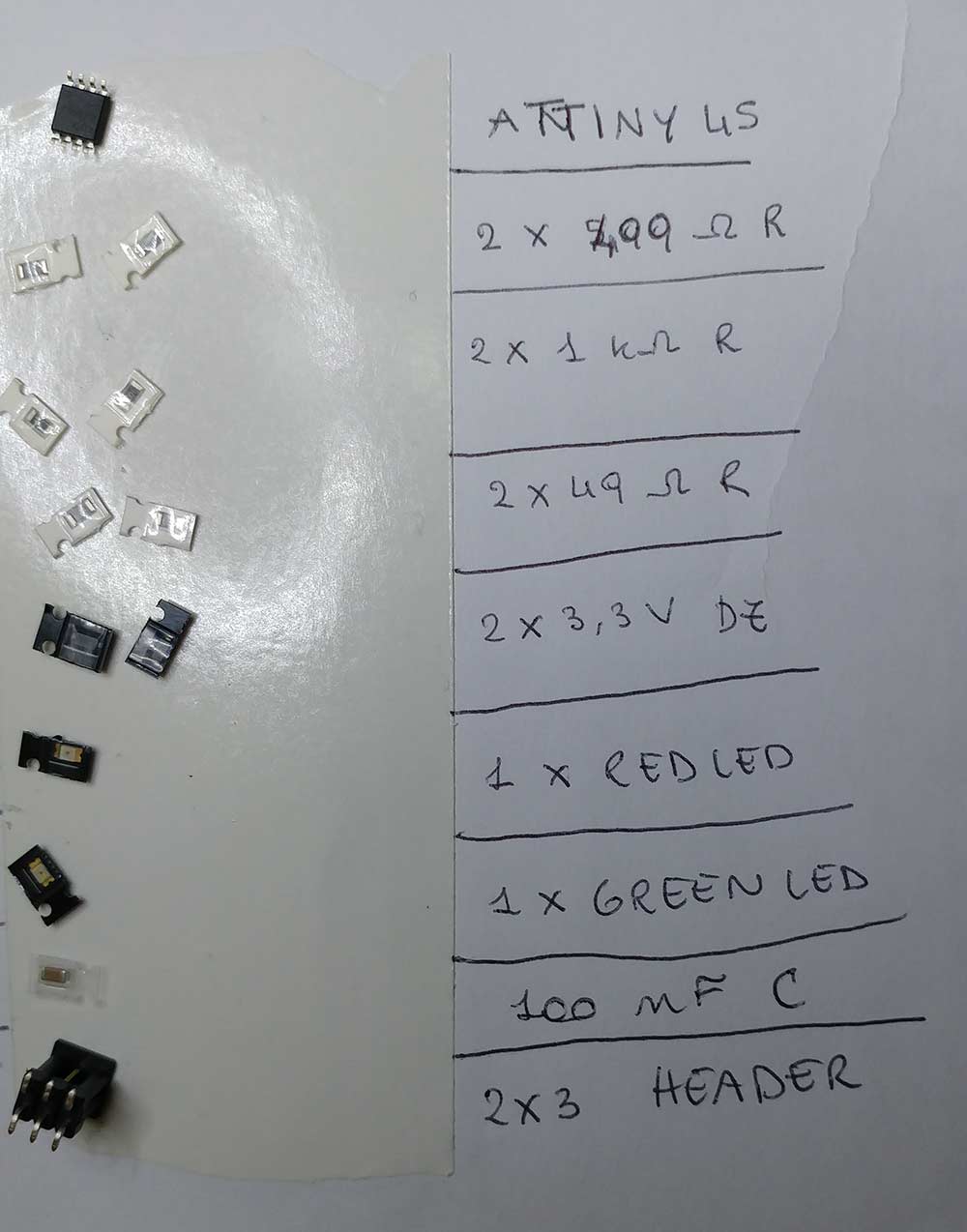 I enjoyed the experience of learning how to solder smd components.Every components are very small,I didn't expect to be able to solder something so small.Our instructor Matteo taught us how to do it,and i cleared all my doubts by watching this video.Before startig to solder I made the BOM ( Bill of materials).The components that the FabTinyISP requires are listed in the documentation of the board.