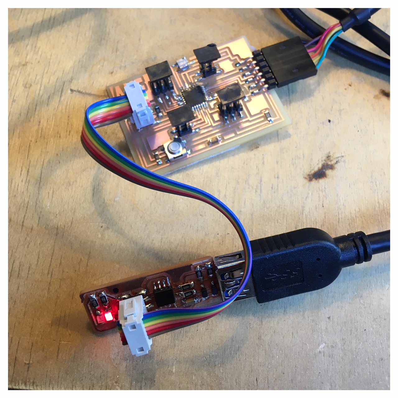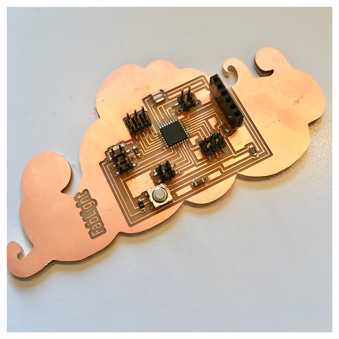After good amount of meetings and tinkering together with teachers at a local primary school and some facetime meeting with Heikki in Finland I realized that I will get the best result for this first product with a board where the teachers also could do some experiments. Here I was quite inspired by Neil Gershenfeld's talk about Seymour Papert's Seymour Papert attempt with the interactive turtles and the importence to make the kids make the interactive turtles. I think it's important to get the teacher to make their own version of the lamp, with their own design and connect it to my main lamp for creating the network. My thoughts are here that the teachers then later on can experiment with the kids. In this way, I think I would have the opportunity to pass a learning experiment rather than just giving them a finished product. So my dream is that this could be a course in the primary Schools' Maker Spaces that I work with, where students produce and experiment with the lamps that are connected to other lamps in other school labs.After my meetings with the primary schools teachers I decided to try to make a version of a FabKit 0.4 board and a version of the Satshakit board and burn bootloader as an Arduino so the teachers have the opportunity to use Arduino IDE for programming. My reason for doning this is a hope for getting teachers to code/program more in the schools Maker Spaces than what I see today. The few teachers who do a little coding and programming in the primary schools in Denmark are familiar with Arduiono IDE and in this way I hope that this project can make them work more with mico controllers and IoT projects with the children. So a kind of kickstarter project for them to engage in.
