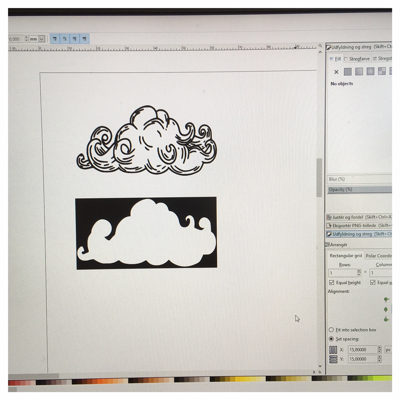 After working with the AKF Fabduino and the FabKit that I made I wanted to try putting my own little touch on a Fabduino-version. So for the hart and brain in my lamp I created this little Fabduino with my handdrawn cloud as the frame. I also attached a female socket for the FTDI so I later kan plug in my ESP-module. I made sure that every pin was available so I - and others - have the opportunity to continue experimenting with the lamp. I think in time the students should be encouraged to hack the lamp, giving it some of their own soul.