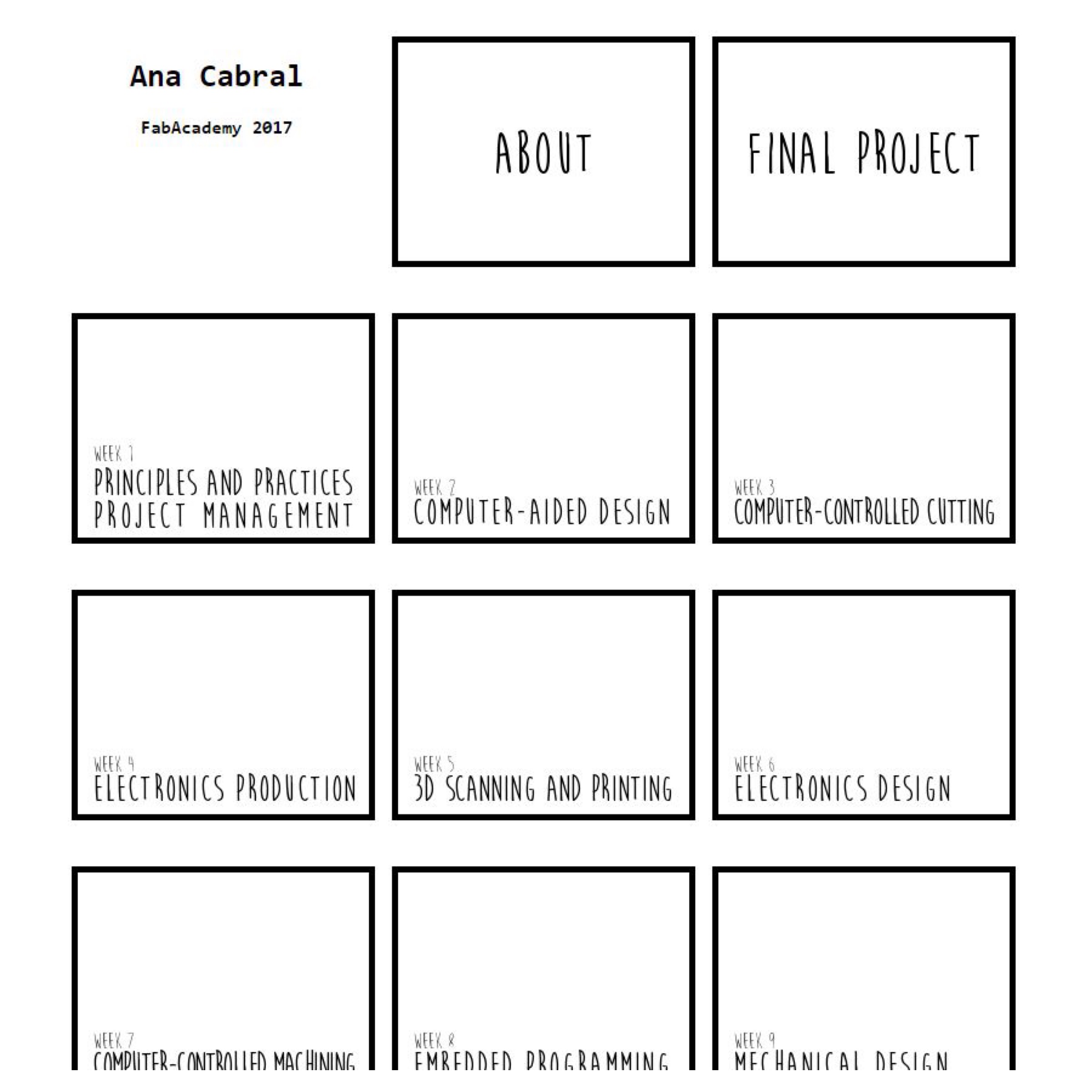 For this assignment I got very inspired by our local fablab manager Ana Cabral and a former student called Nicolas Kisic Aguirre's student web pages. I love the simple struture and the easy overview that their sites create. Here below you can two pictures of the mentioned students and use these following liks to visit their websites.