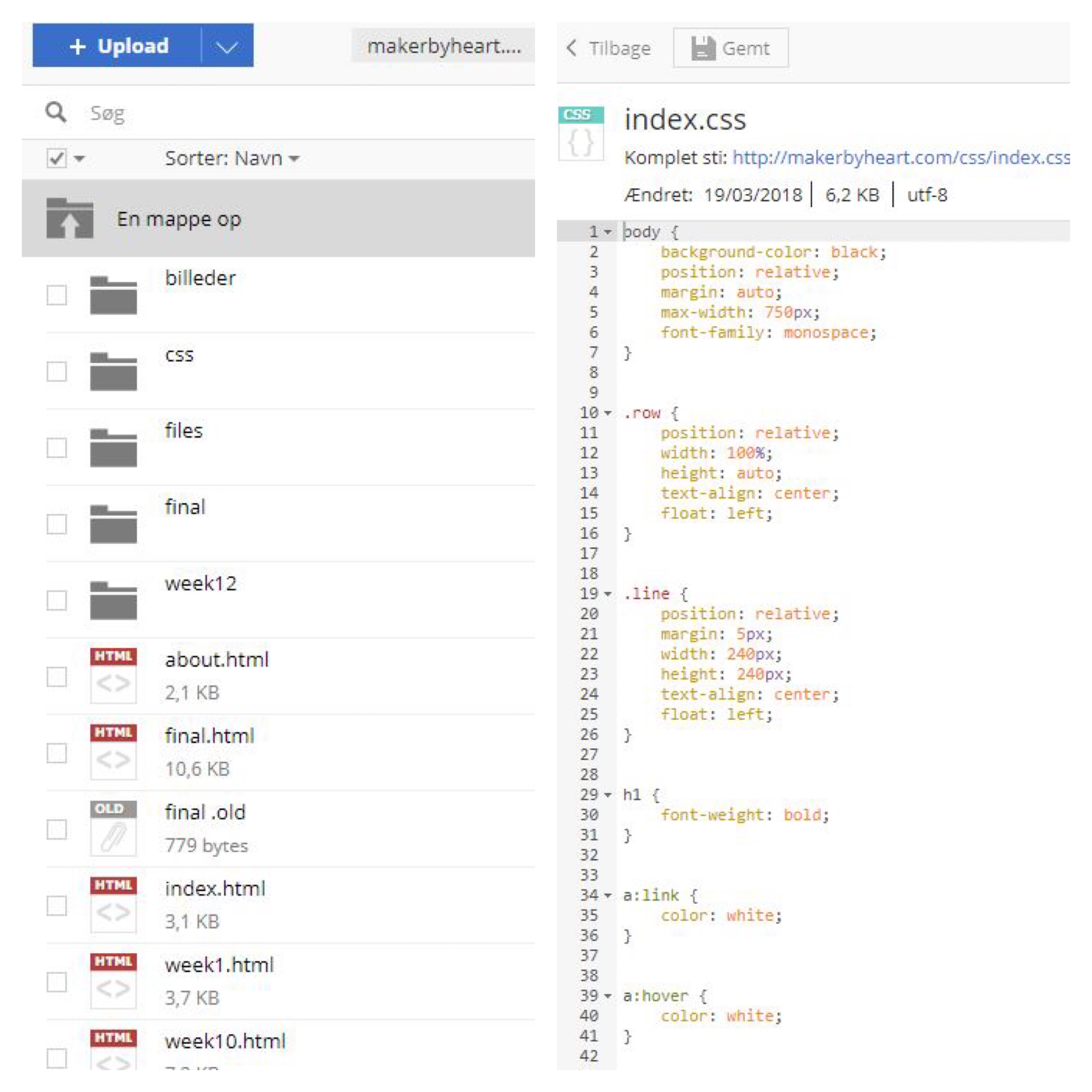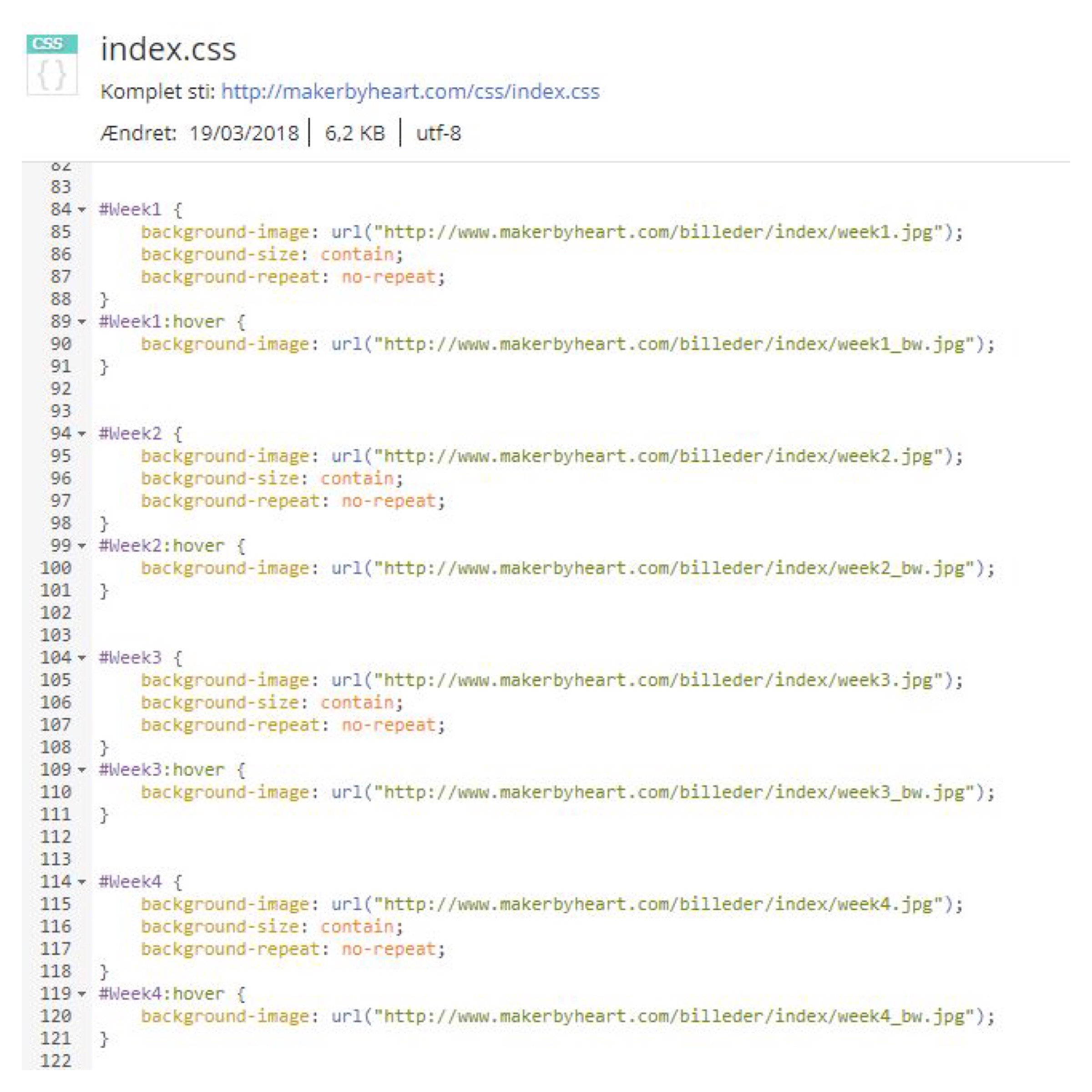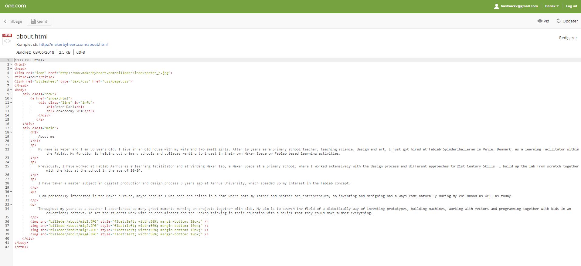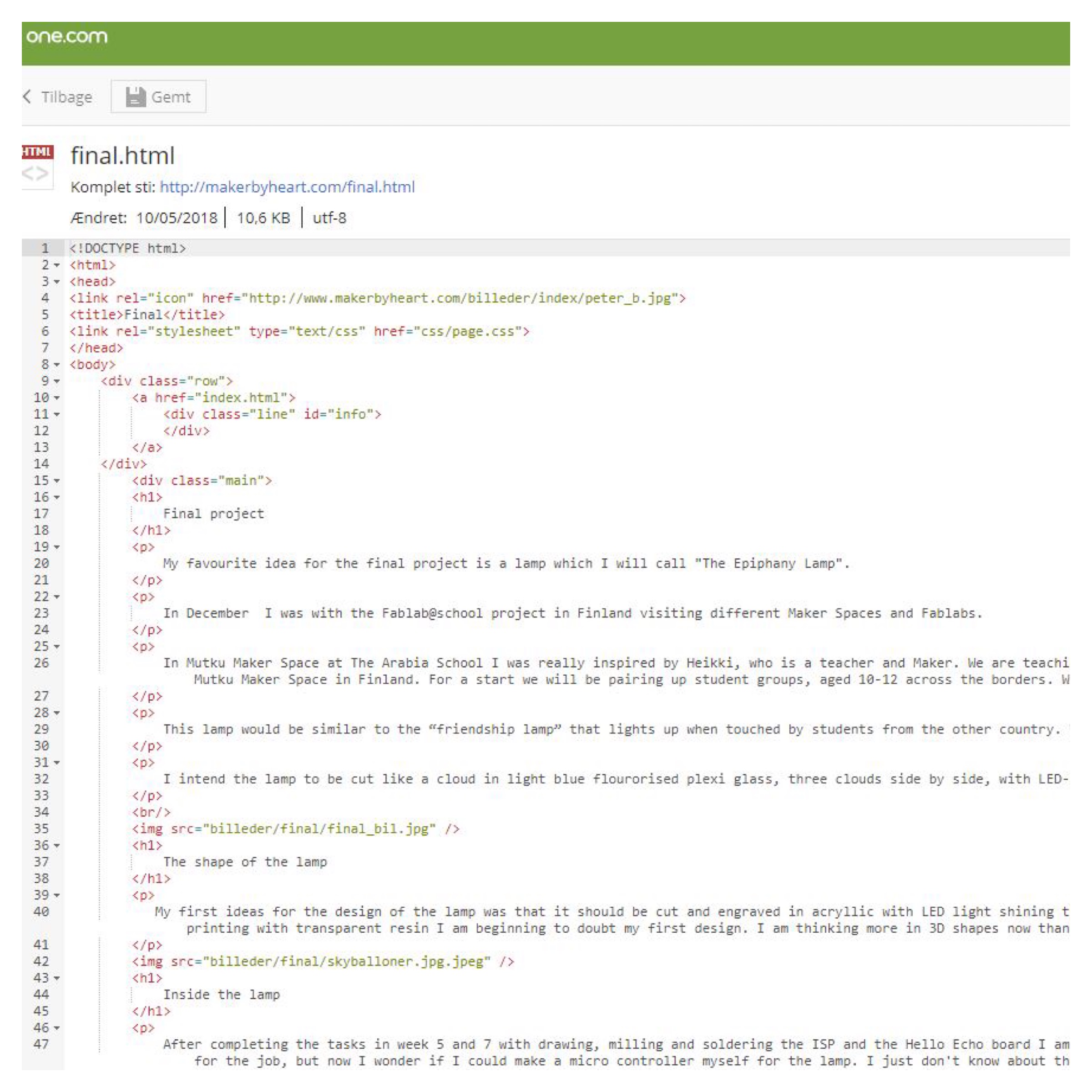 I have for some time ago bought a domain name at One.com, which I had not used at that time. Now it could be used to test the html and css I was writing in Notepad ++. So I have constantly copied and saved my html to my domain at www.makerbyheart.com. and cross-revised items that have not worked (and there have been many of them).