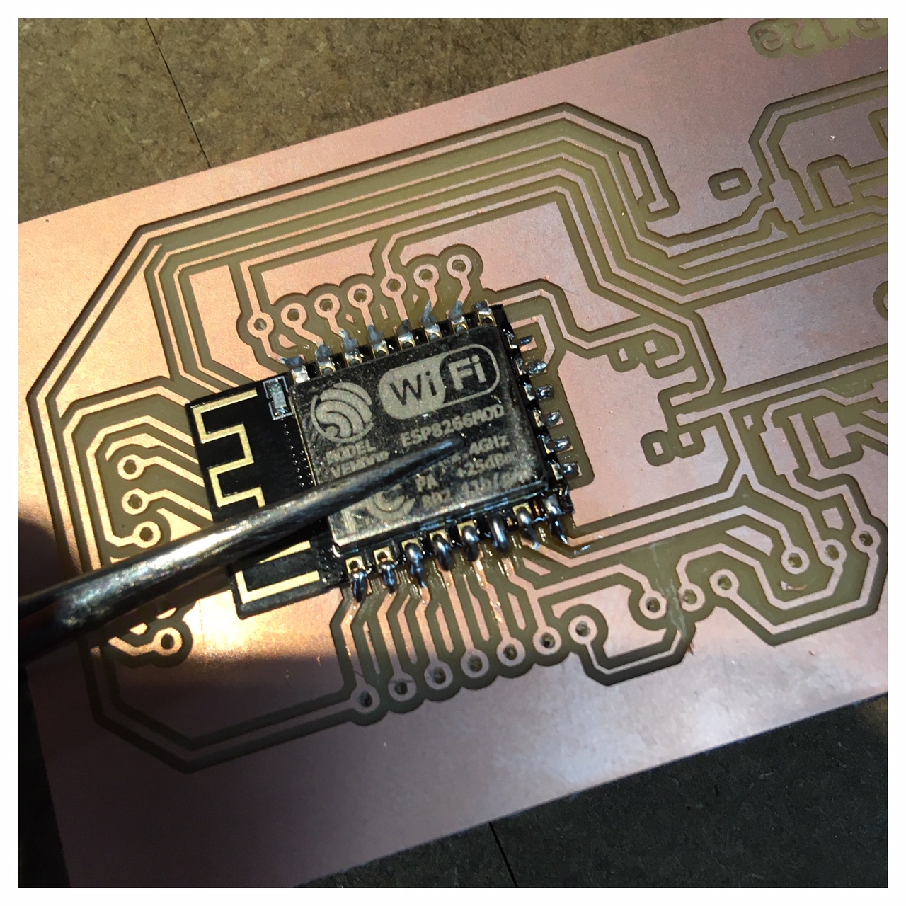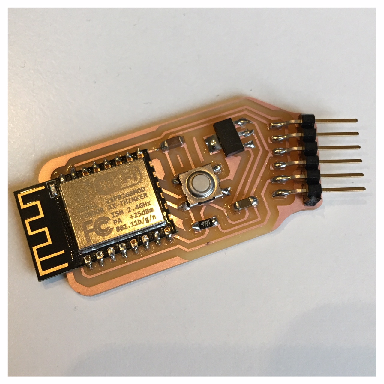 Where should I starte here. Hmm the ESP is right now a little like the story about Ahab's quest for the White Hvale. Right now I am really struggeling with getting this to work. I made a quite big range of different ESP-boards and modules and for everyday I think I get a step closer. I managed to flash my code on one of the ESP12e-modules after a lot of trial and error and it connetcs to my iPhones shared internet or hotspot.