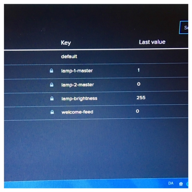It also keeps a protocol under feeds where I can monitor the date of the interaction. I put in a few different pictures. One from lamp1, lamp 2 and one for the brightness.