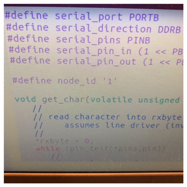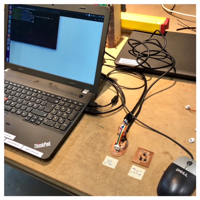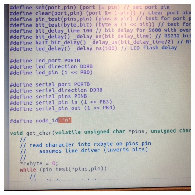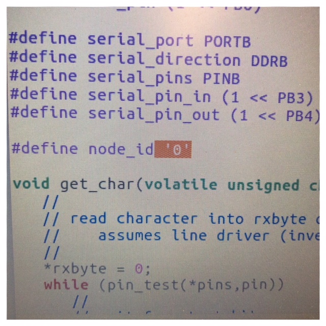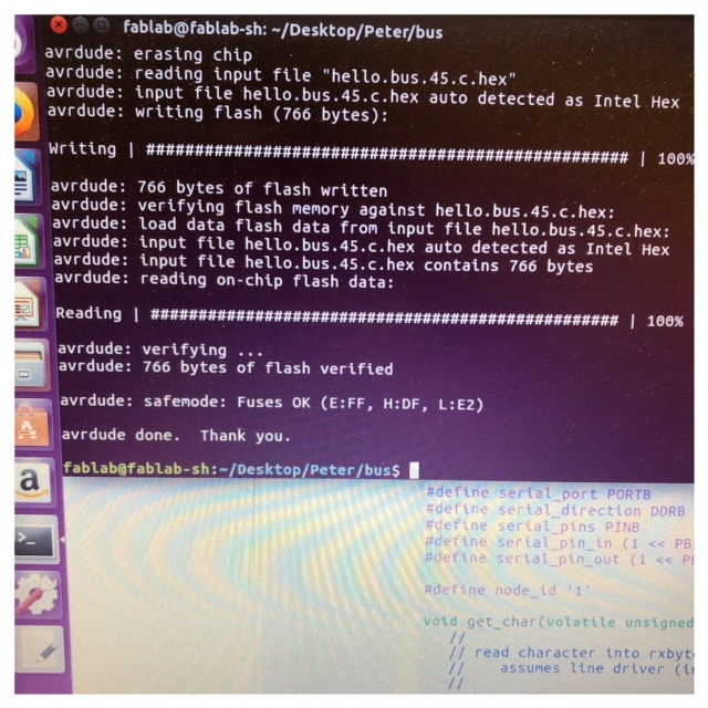 To burn bootloader on my two new boards I used my pc. After that I had to upload the make file and c code. Here I used the computer in the lab which runs Ubuntu. The first one I coded was the Neil example board. I named my bridge board "0" and the node "1" in the c code. When I uploaded the code I got an error about missing separators. I've seen this type of error several times now and it's about "wrong" spaces in the code that needs to be deleted. I think maybe they occur when you download the code and upload it to different programs. After a seerch for these wrong tabs and deleting them the code run perfect.