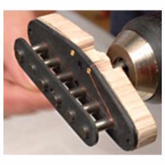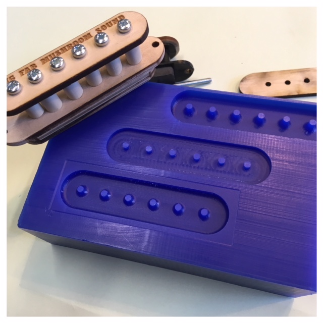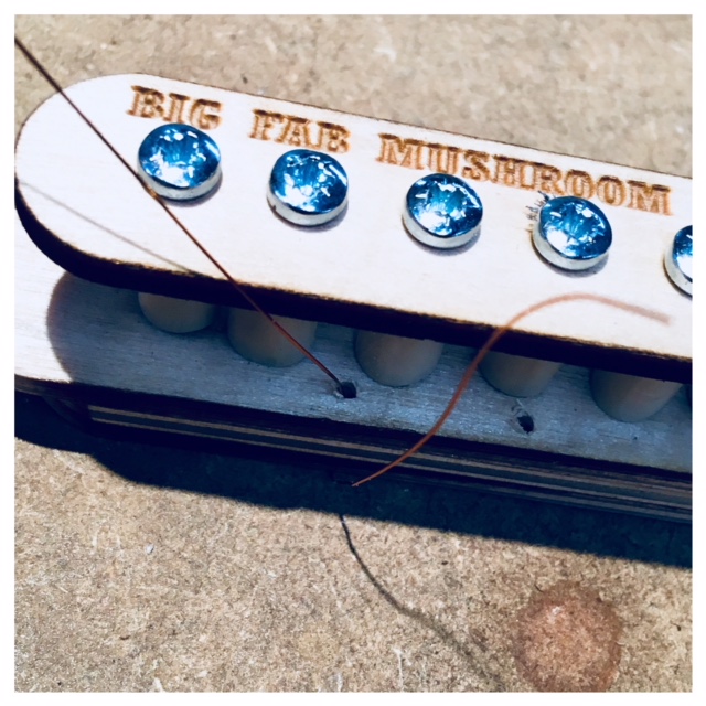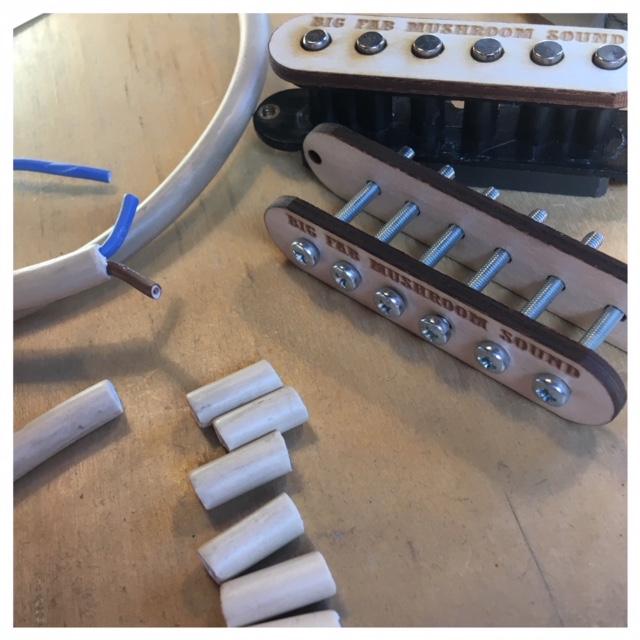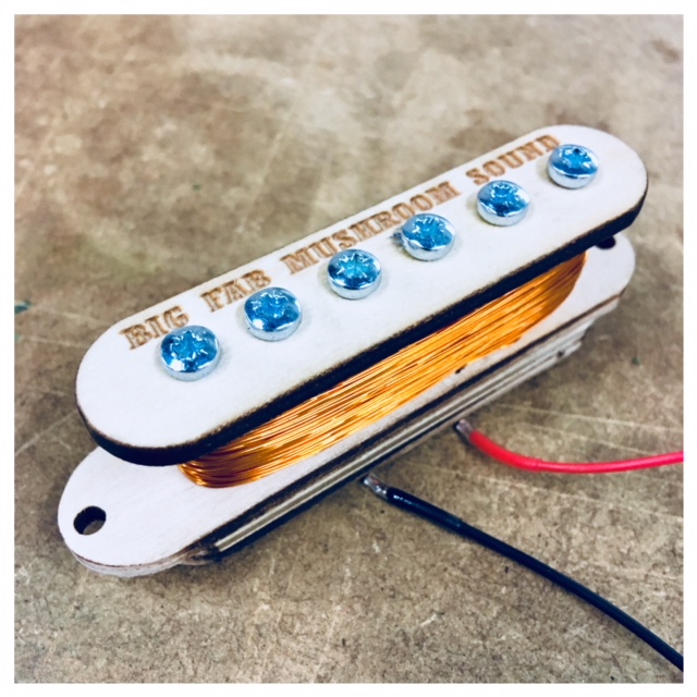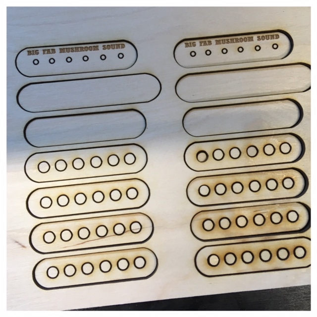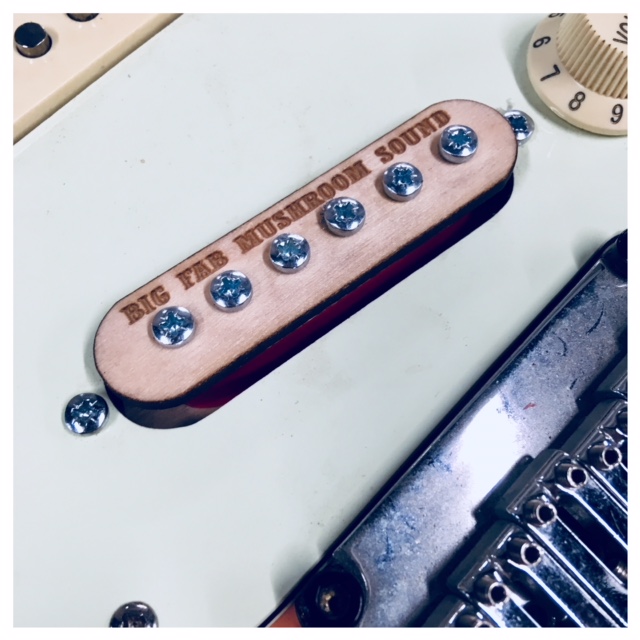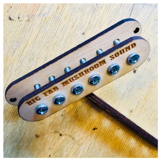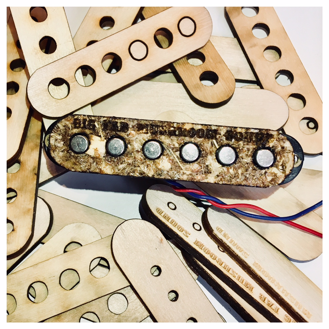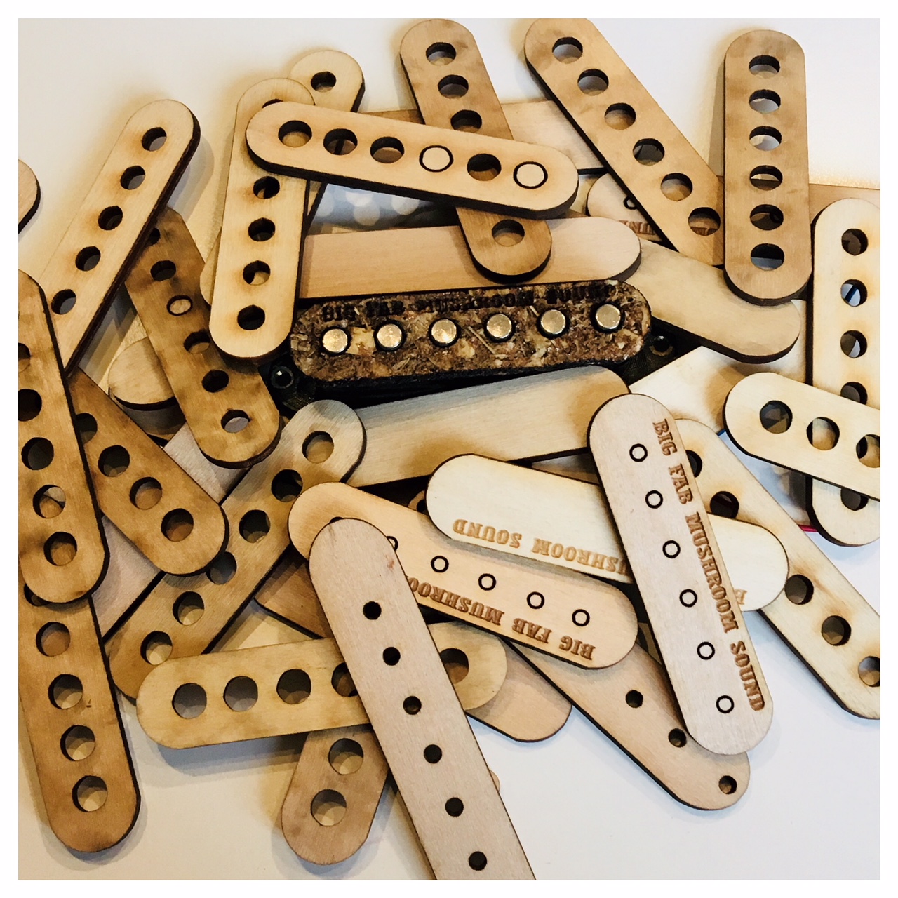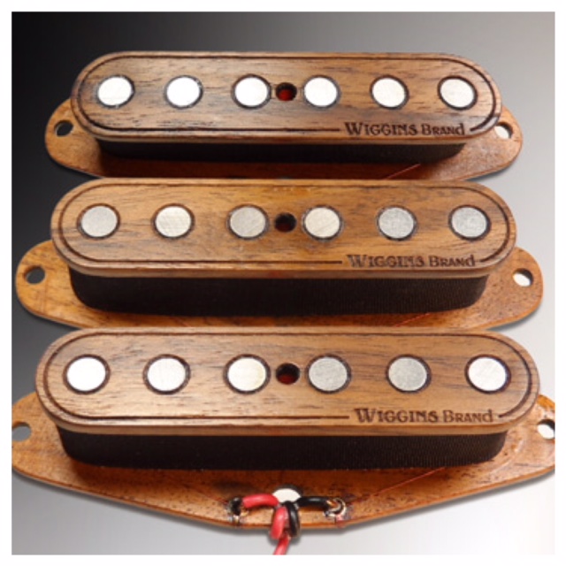 In my fieldstudies of the pickup, while trying to understand the construction and electrical function, I found some really great semi-homemade pickup designs as you can see in the pictures. There is one really beautiful piece made from a brand called Wiggins. The pickup frames are made from warm colored hardwood with some laser engraved features.
