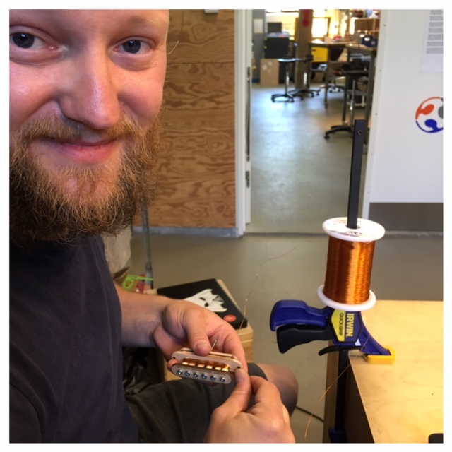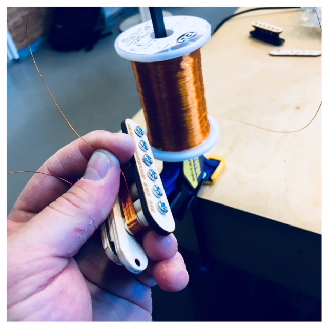 Winding a pickup requires exercise, exercise and exercise. I first tried out with a drilling machine as shown in the picture. Winding the pickup very slowly, but it ended up in total knot disaster several times, so I actually ended up winding my pickup by hand. It was actually very cozy, but extremely time consuming.