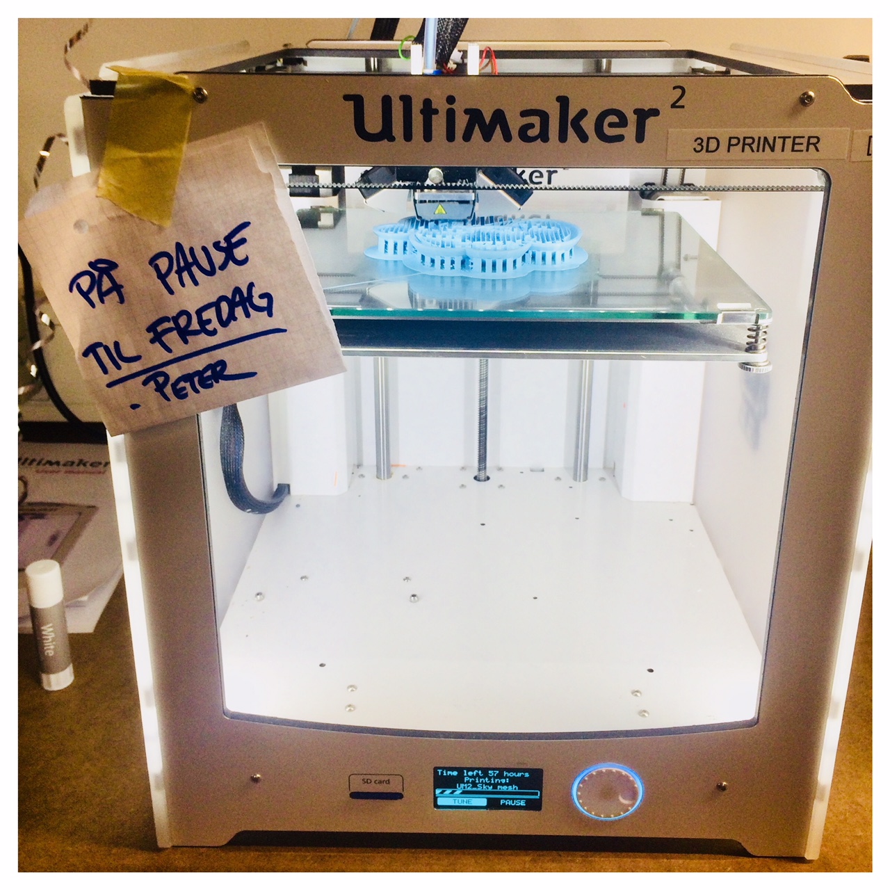 I wanted to print a cloud that was quite big, so I made my design around 6 x 4 inches and ended out with a print that would take 21 hours. But in our lab, the 3D printer may not run unattended so I made an appointment with our lab manager to start the print in the morning, print all day and then put the print on hold until I could continue the next morning.