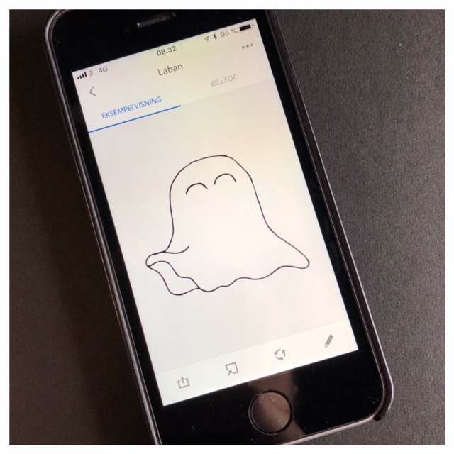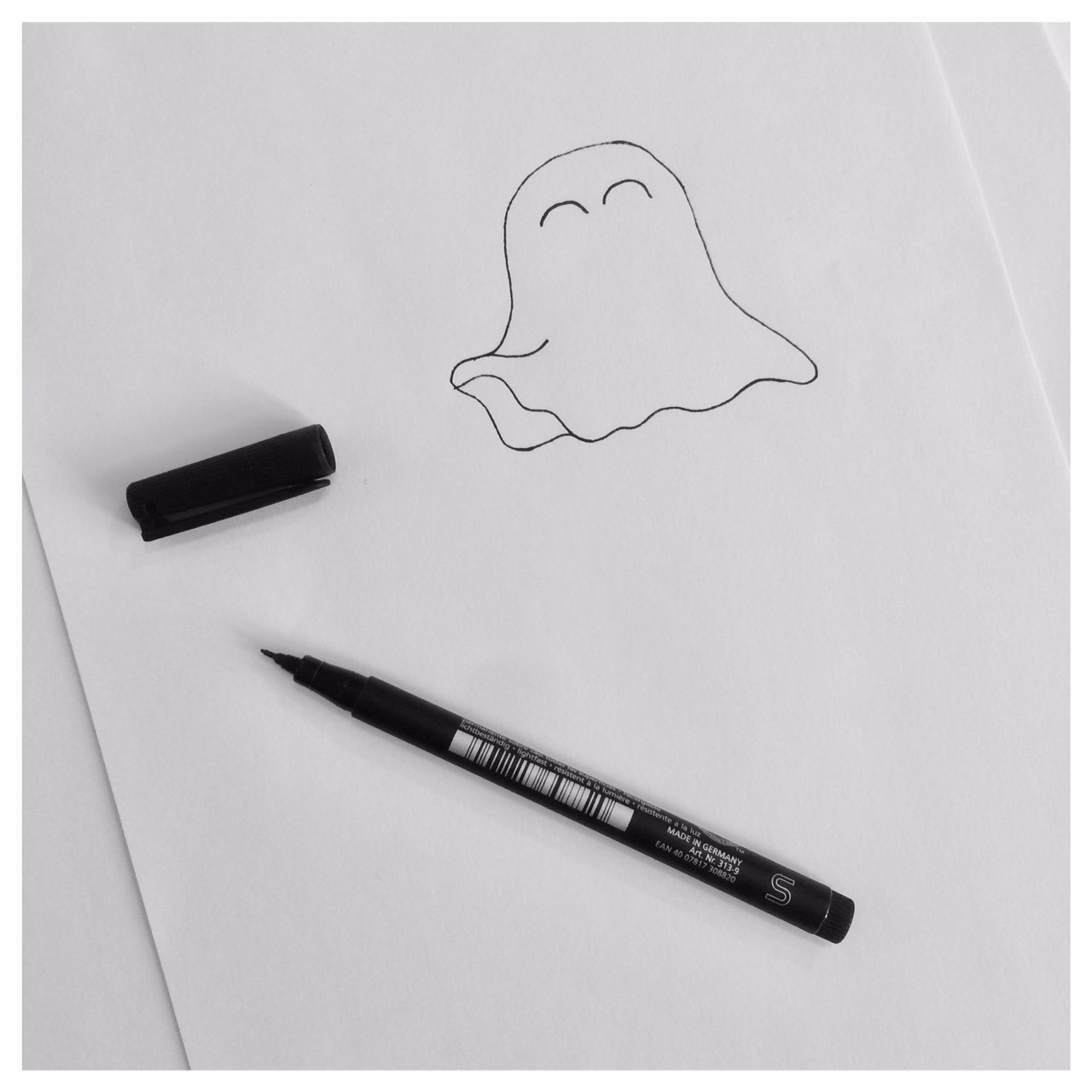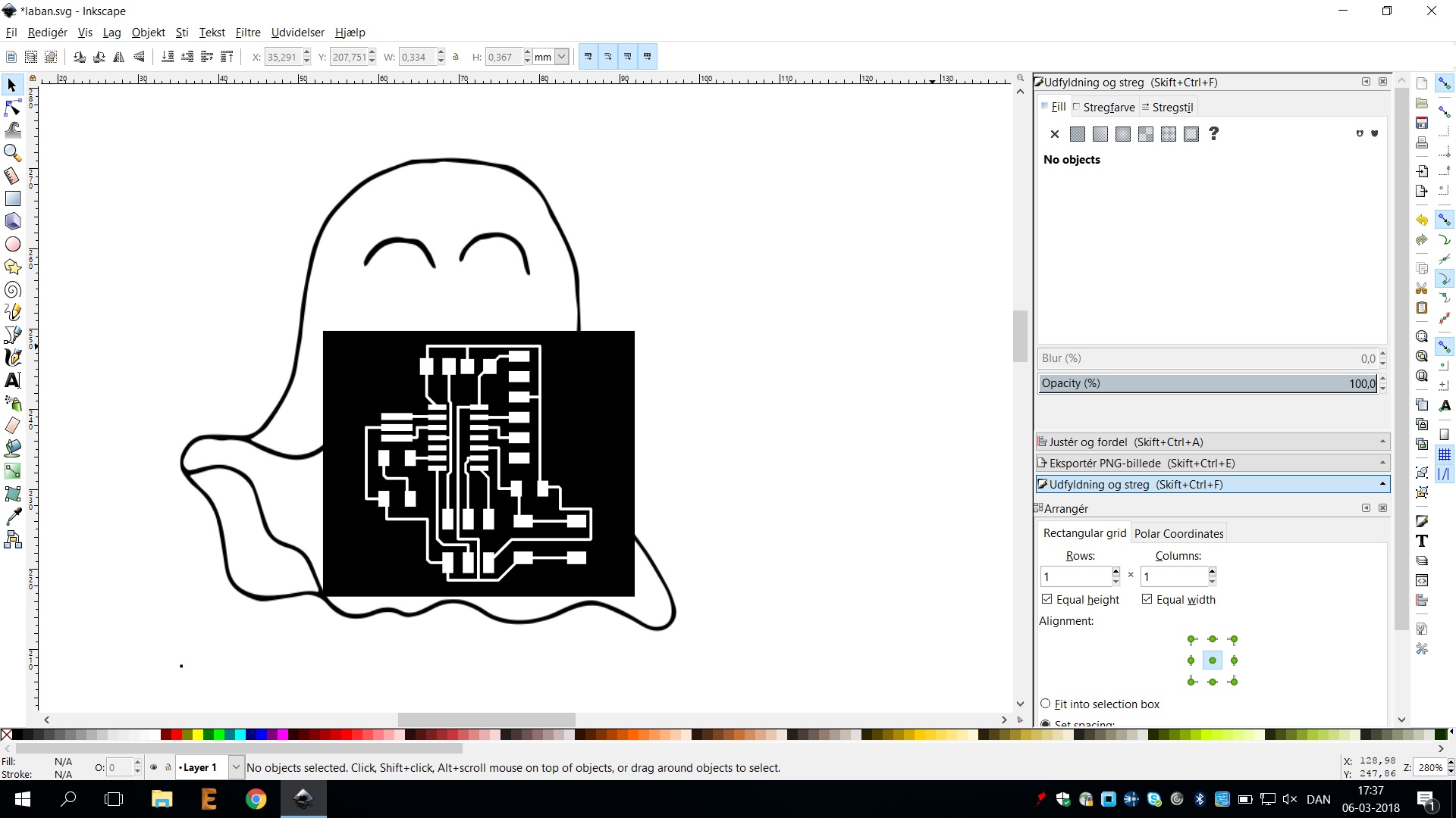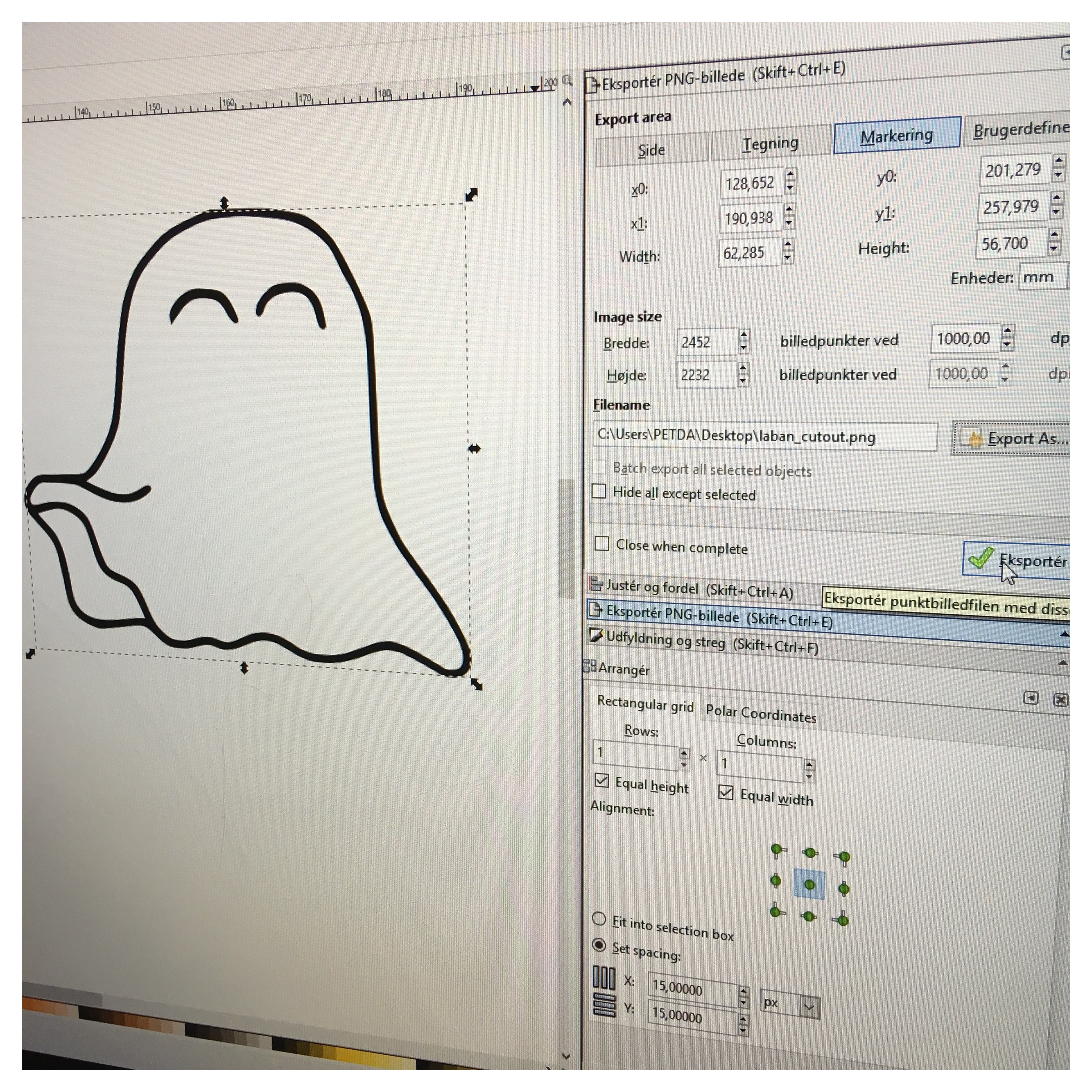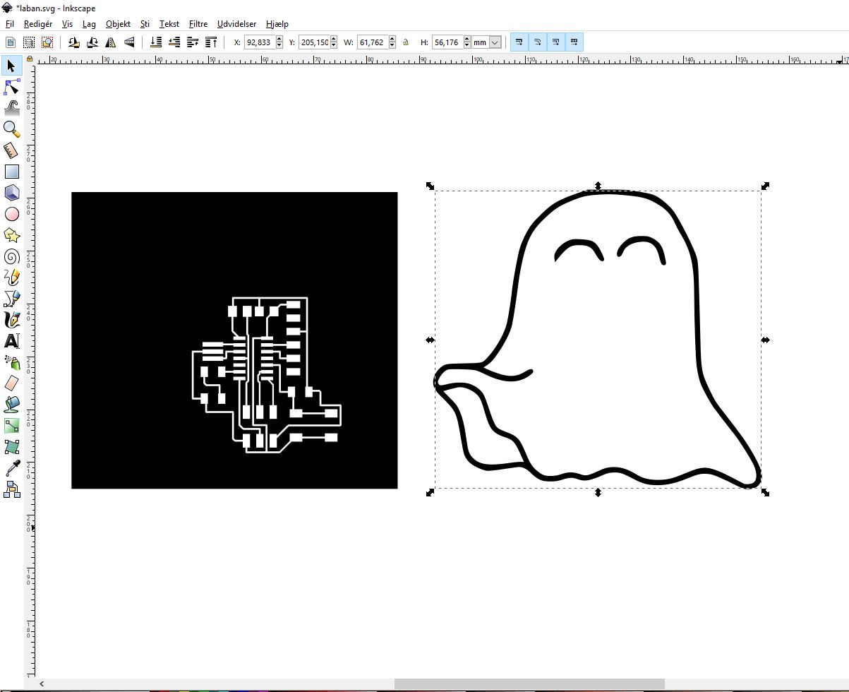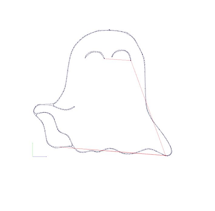 I therefore drew a new ghost by my hand. A shape that suited the shape of the traces better and added a few details such as eyes. I then scanned the drawing into InkScape and resized/cropped it so that it became perfect for my little ghost.