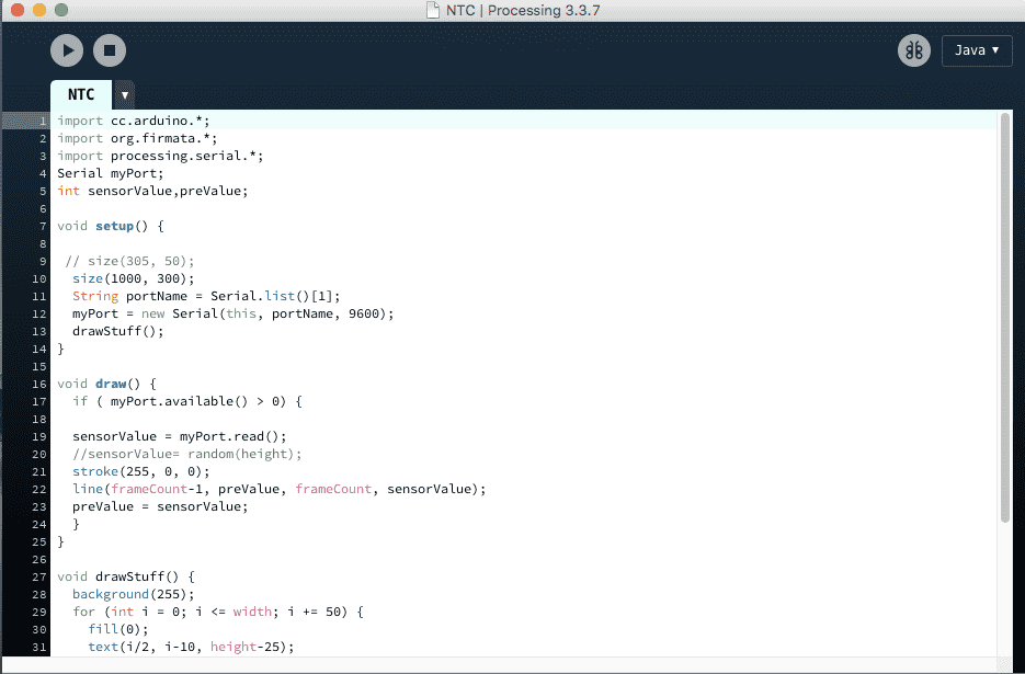 Since last week I programmed a board of NTC, and now I am using Processing 3 to build an interface and display the temperature with a figure.