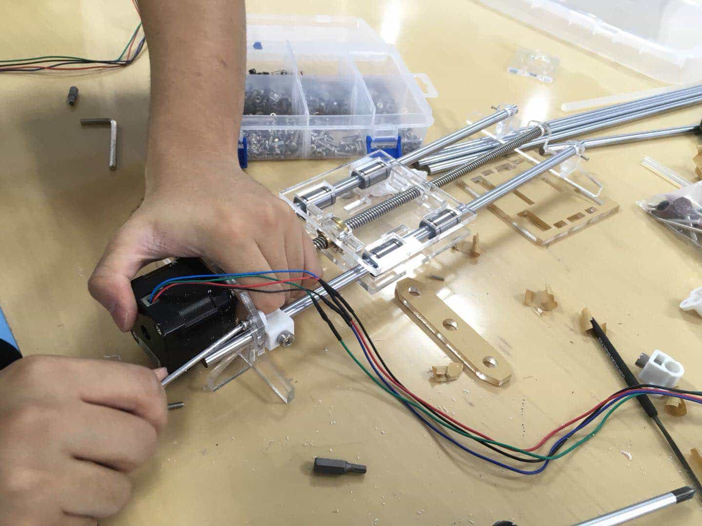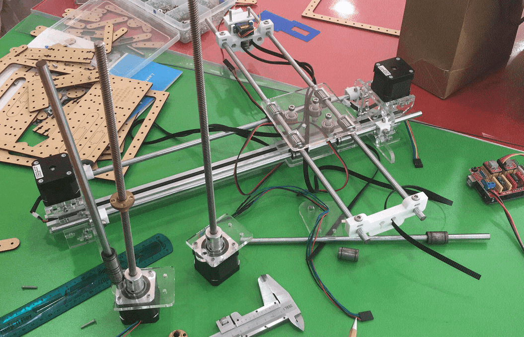 For prototyping this machine more fast , I took apart an old 3D printer and recycled the metal parts.