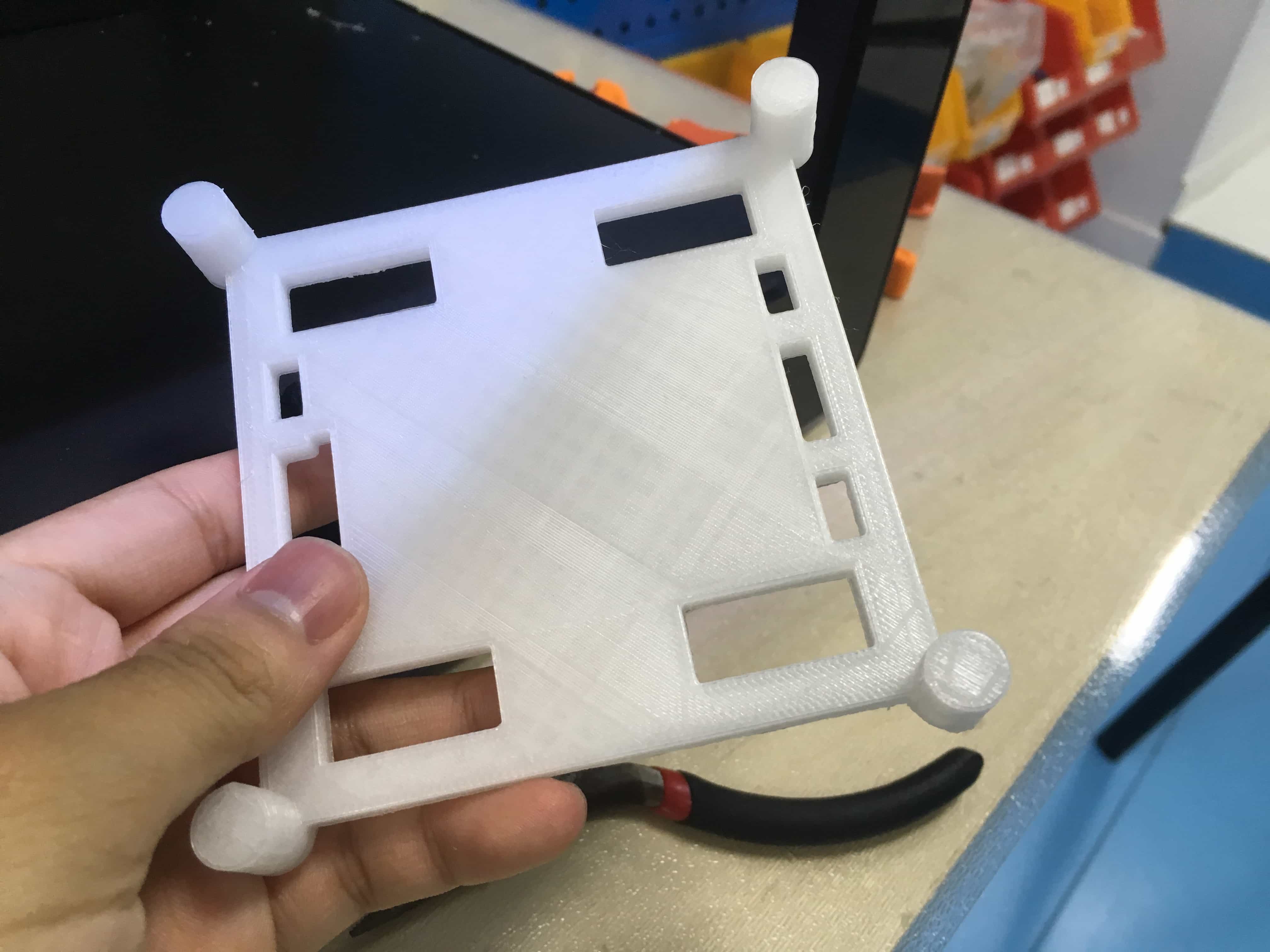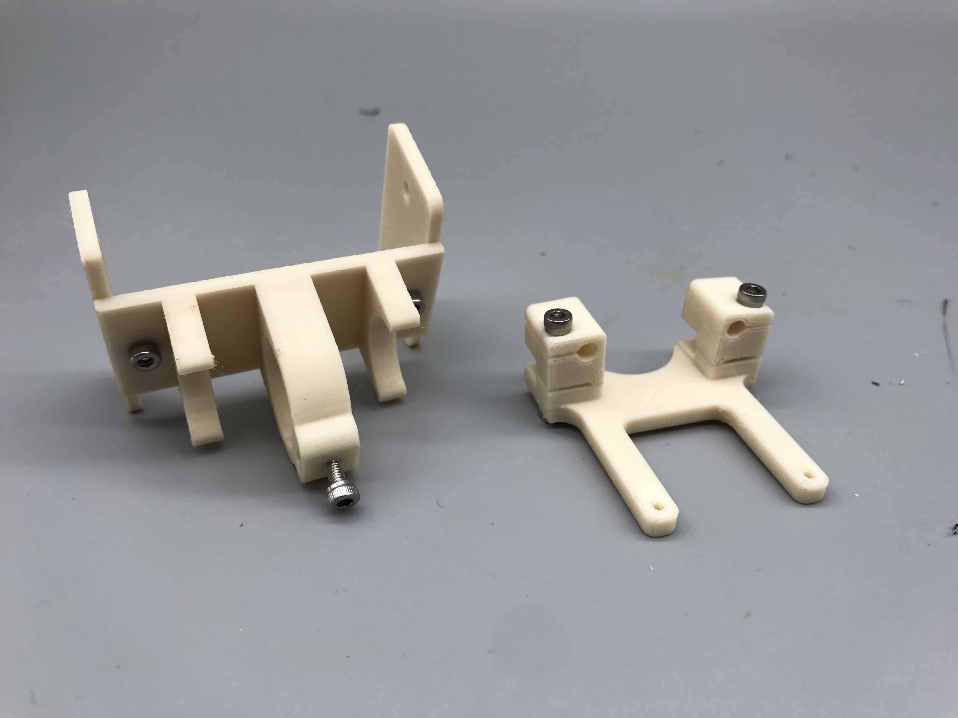 The frame can be folded like this. But the first version is not stable: even though I designed dogbones structure to lock the joints together, because of the inaccuracy of 3D printing, this structure did not work well. Plus, the stepper motor was too heavy.