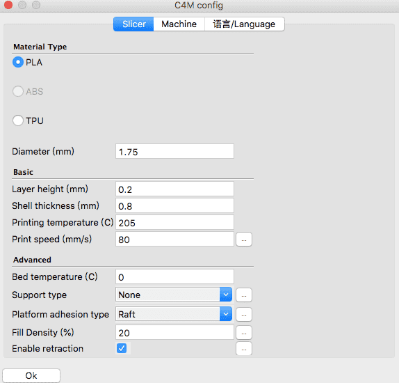 Since we are using mostfun's machine, we have to use a slicer called C4M, which is also developed by mostfun to cooporate with its machines.