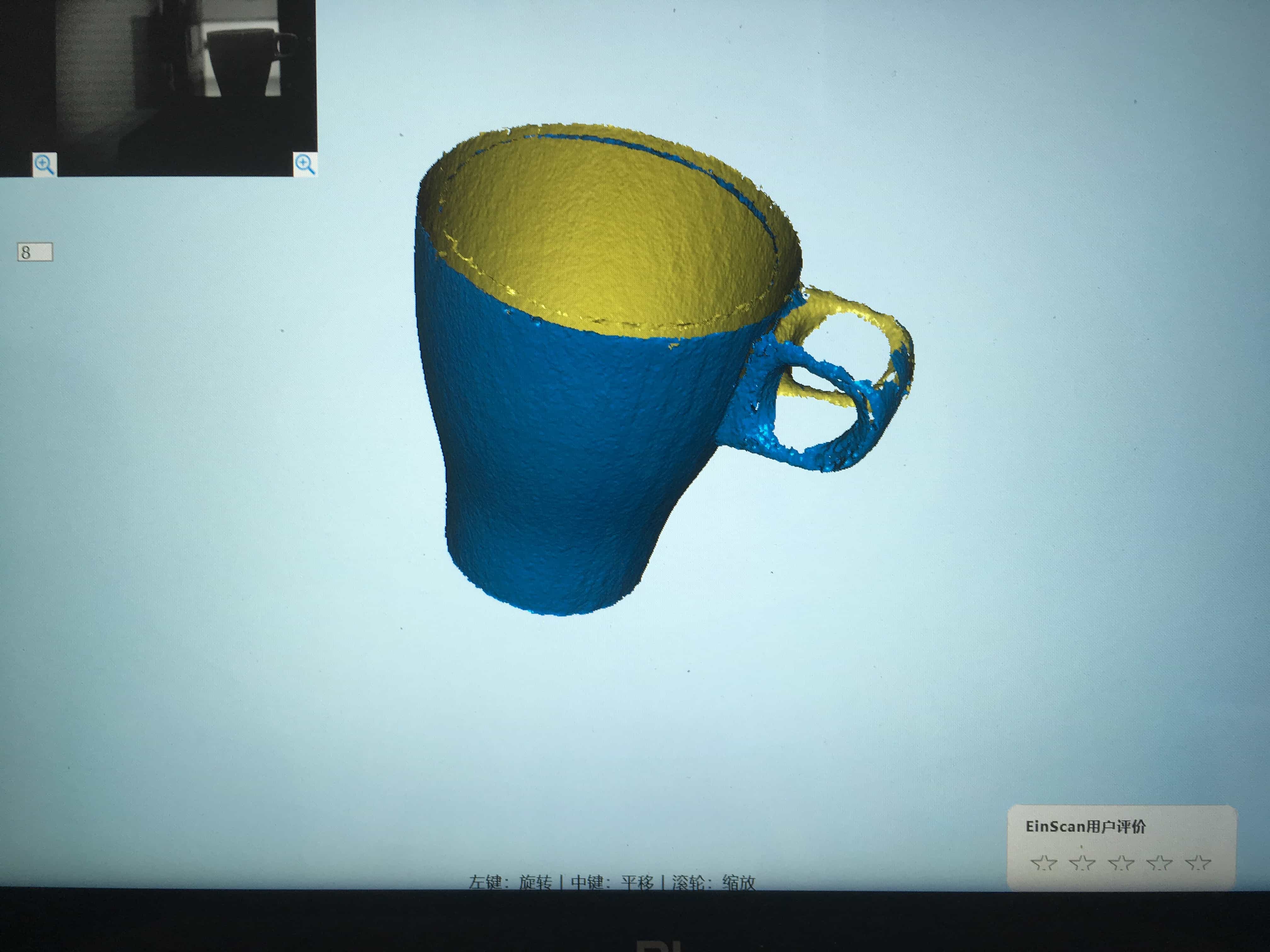 This is the result of the scanning. Of course, the scanner cannot scan the internal space of the cup. Since the sup is too deep, the scanner cannot scan the internal surface of the cup.