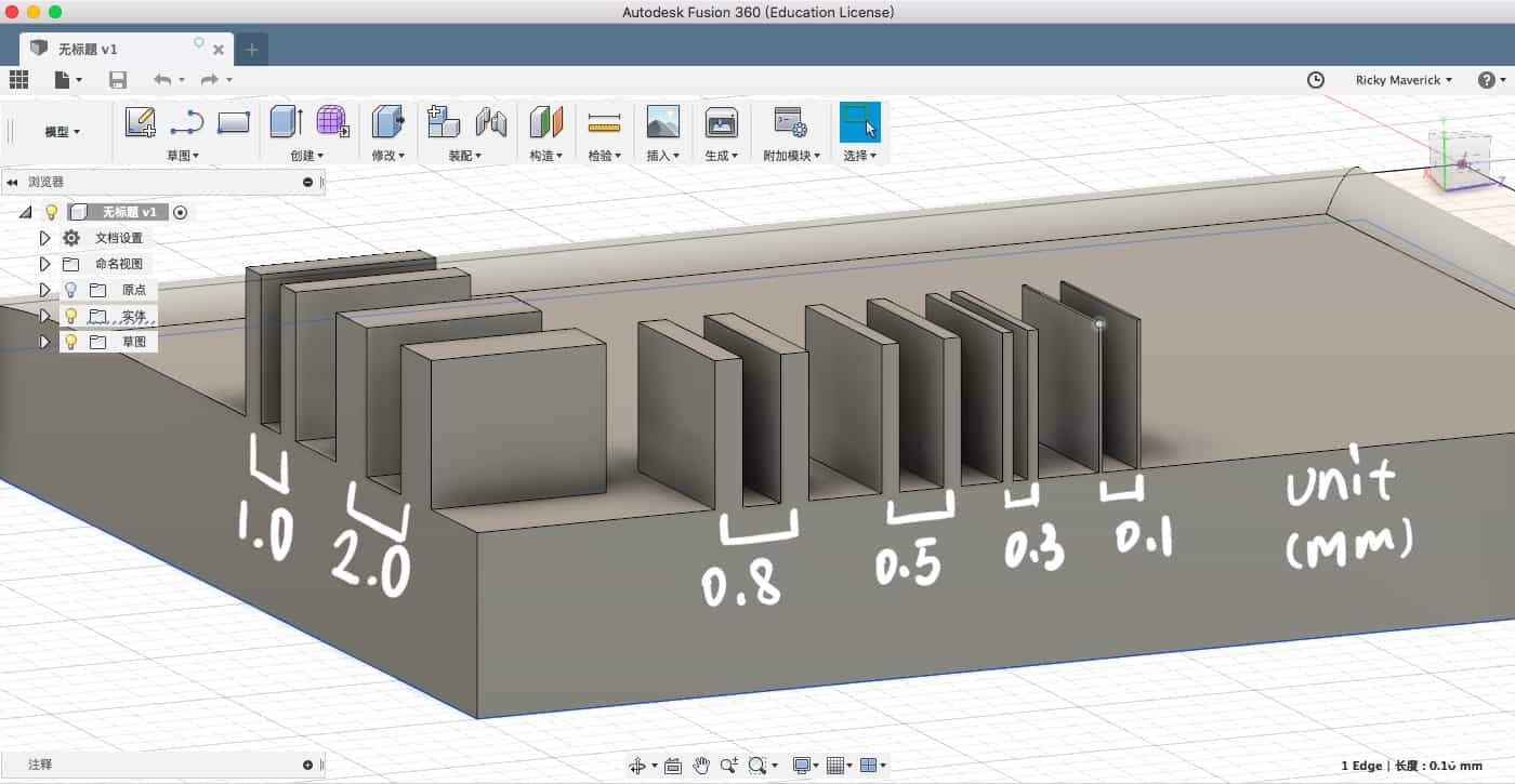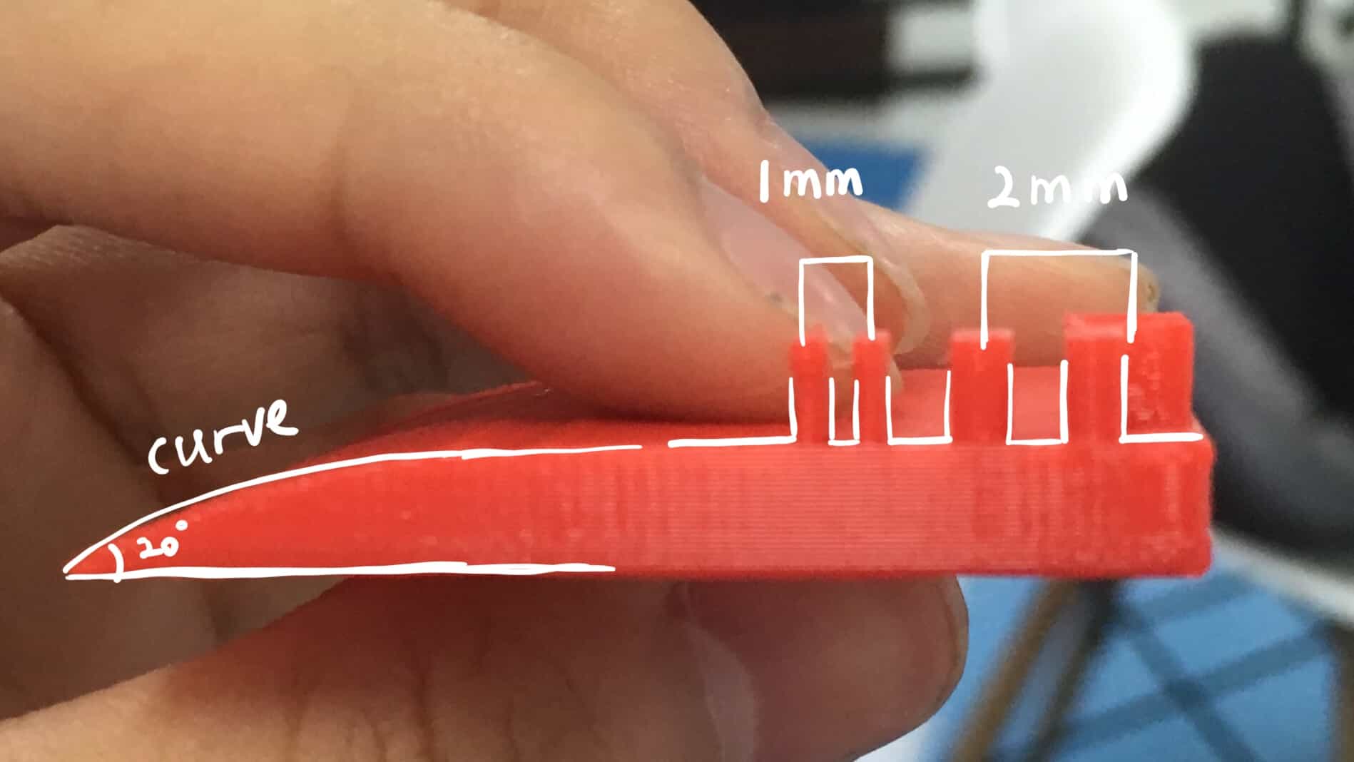 I designed the testing blocks from 2.0 mm to 0.1 mm.