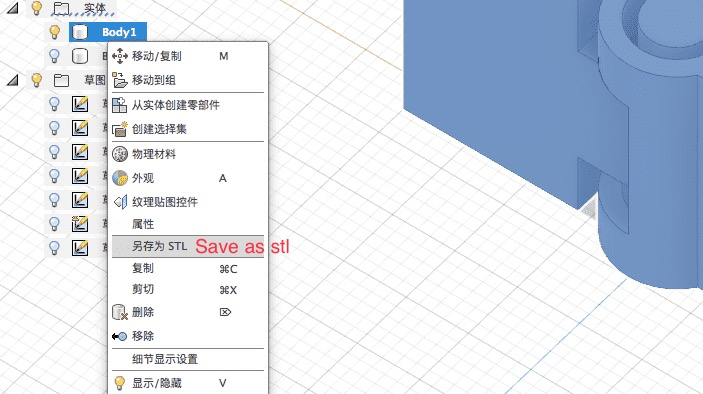 For the first place,we have to output the file in fusion 360 to stl, only which can be recognized by a slicer (gcode generater for 3D printers).