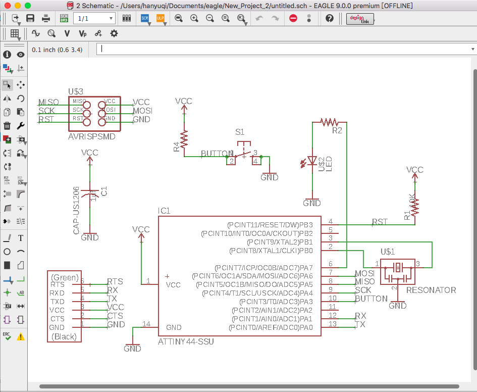 In this week's asignment, I am learning to use eagle to design my own circuts and pcb boards.