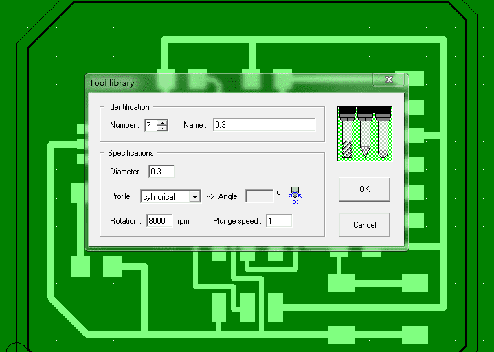 < Here to visit CopperCam website >After installing, we have to go to too library to add our own tools. I am using a 0.3 mm tool.