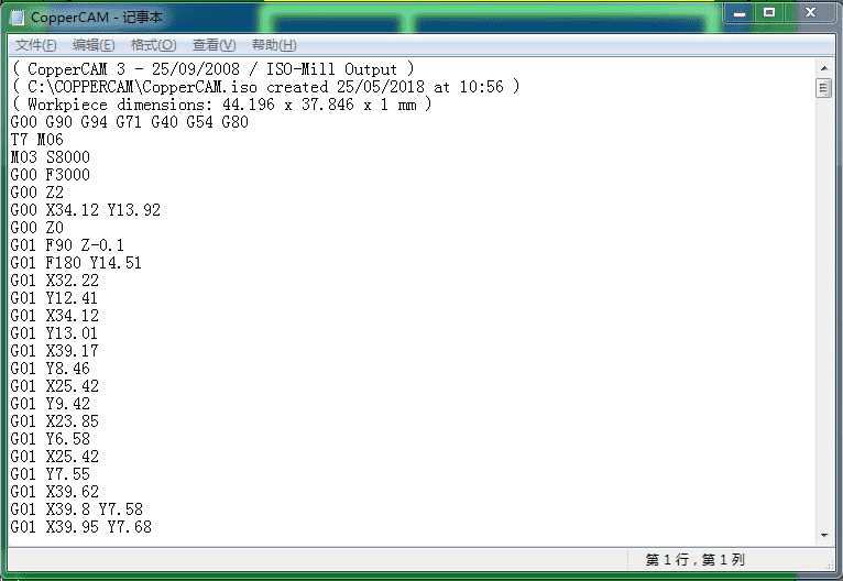 All the cauculations are done. Click the Mill button (which has a drill and lightning) to generate gcode. Remember to change the file name because the default one will lead you to save an iso file, which cannot be read.
