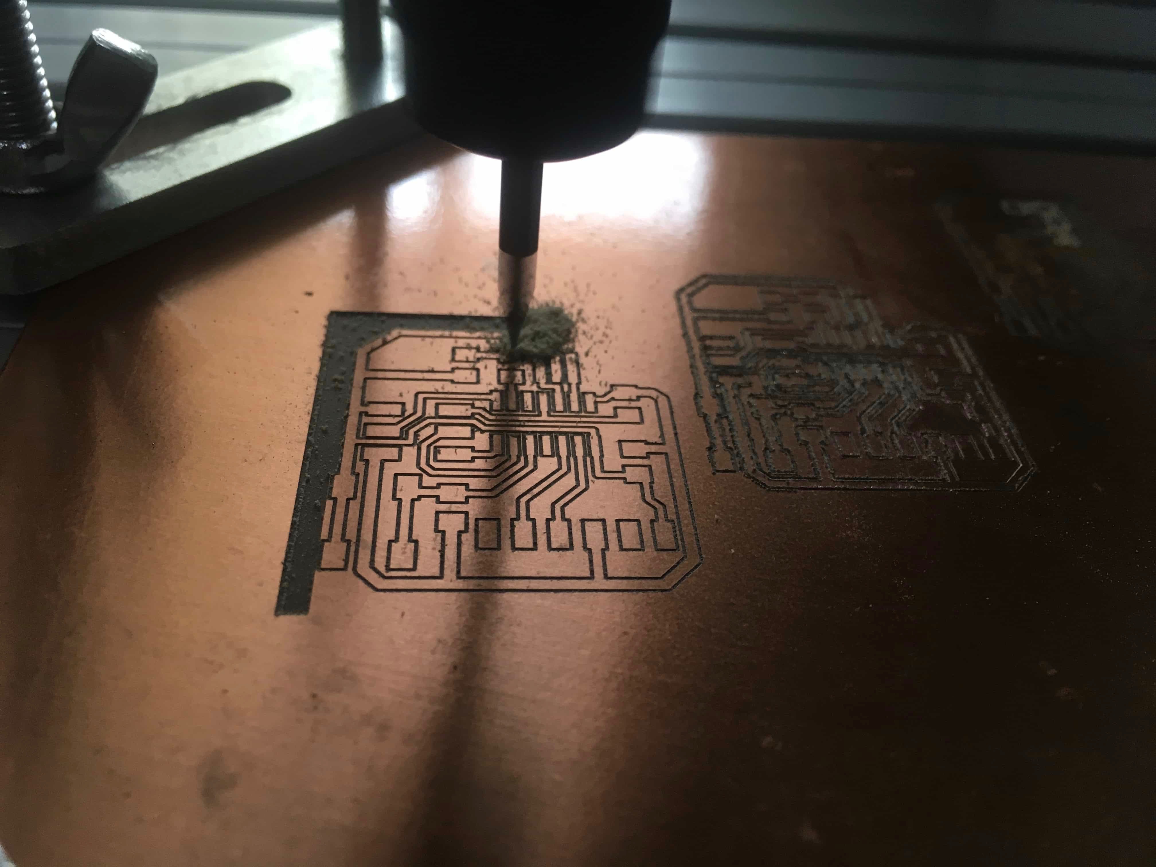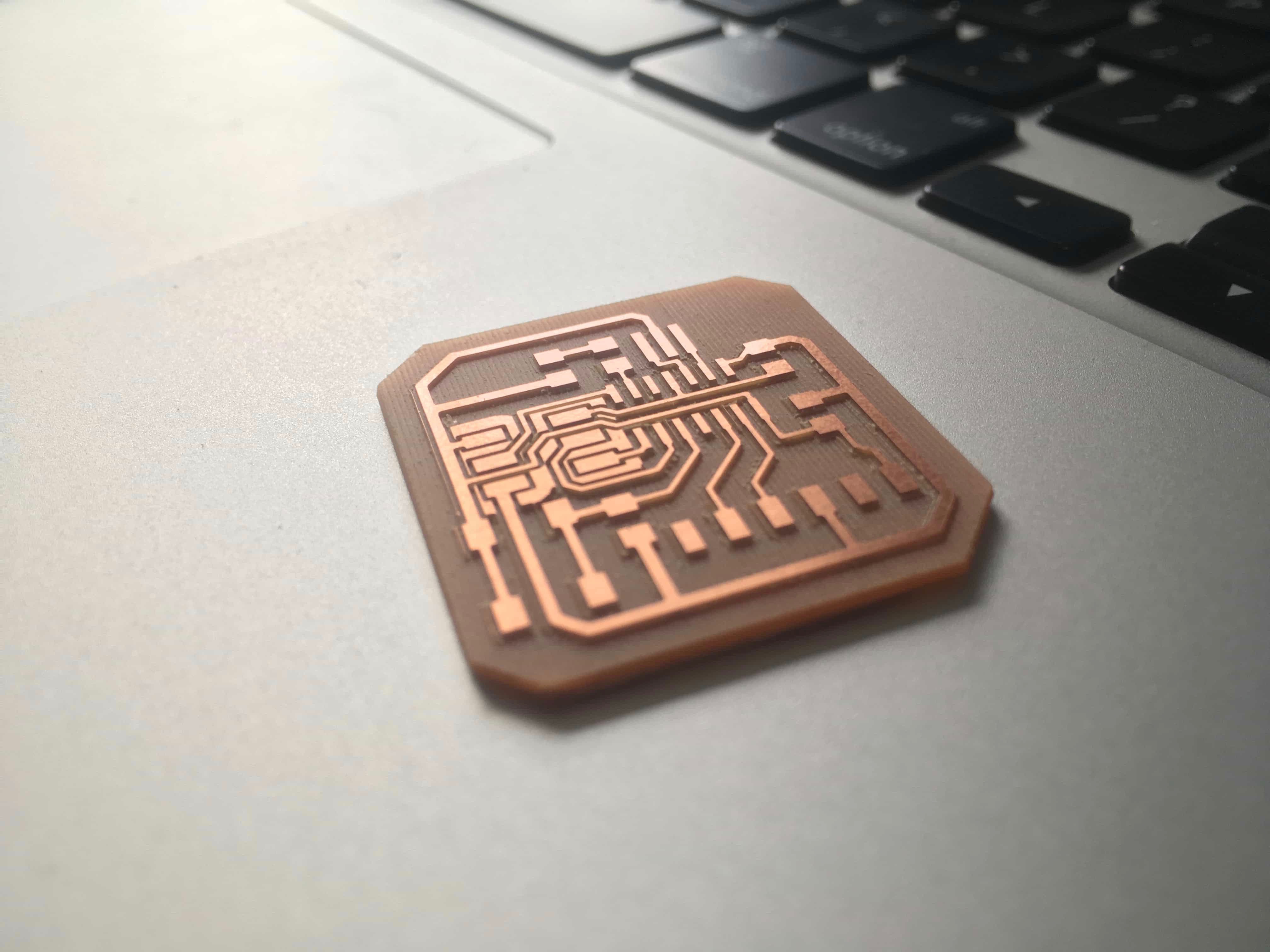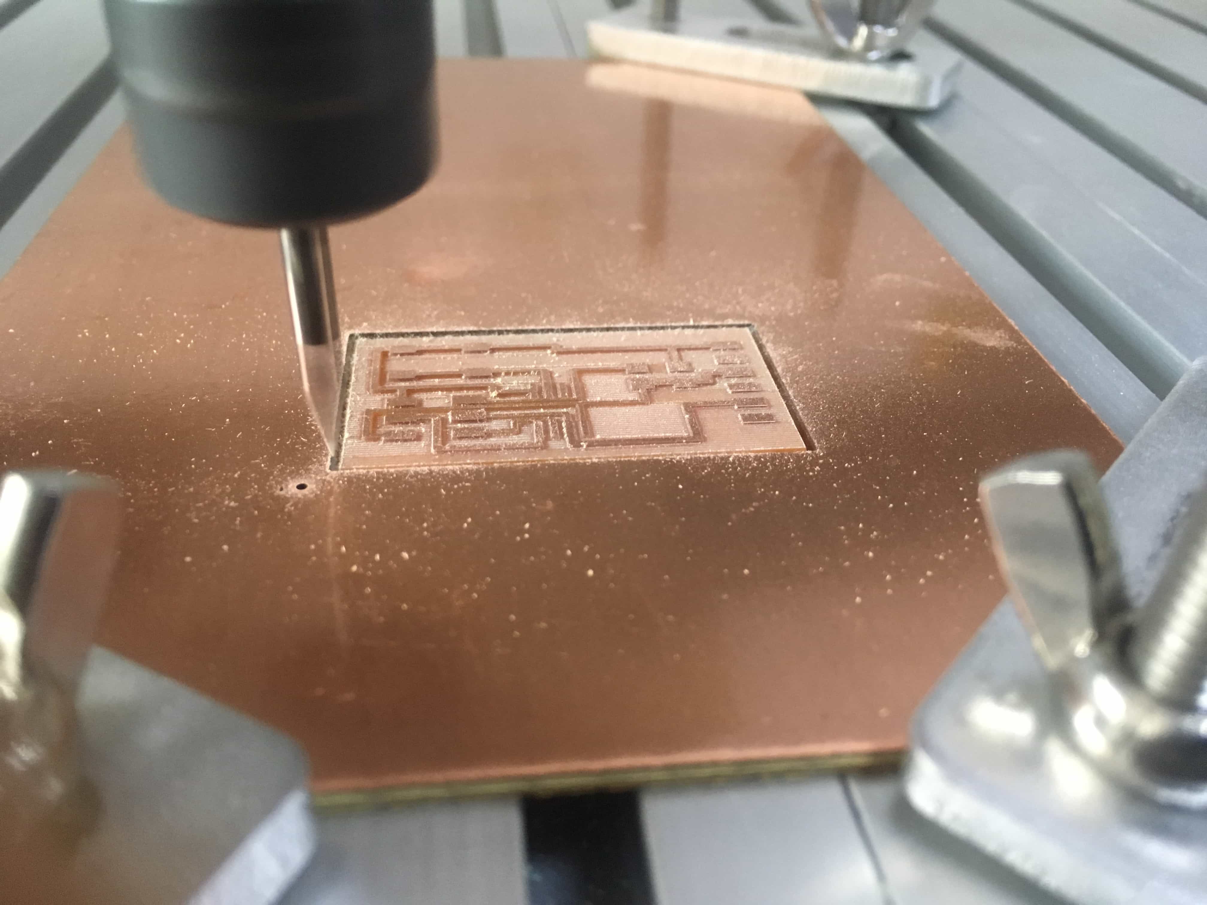 Because my milling machine, which is controlled by mach 3, cannot recognize the gcode produced by the fab module online generator accroding to the fab isp image on the class schedule, I decide to continue my making of the hello board from the electronic design week.