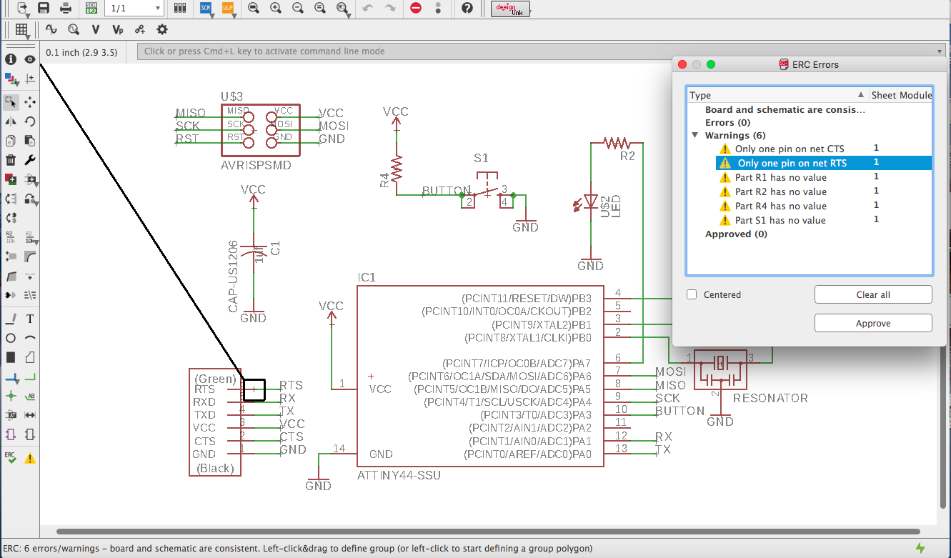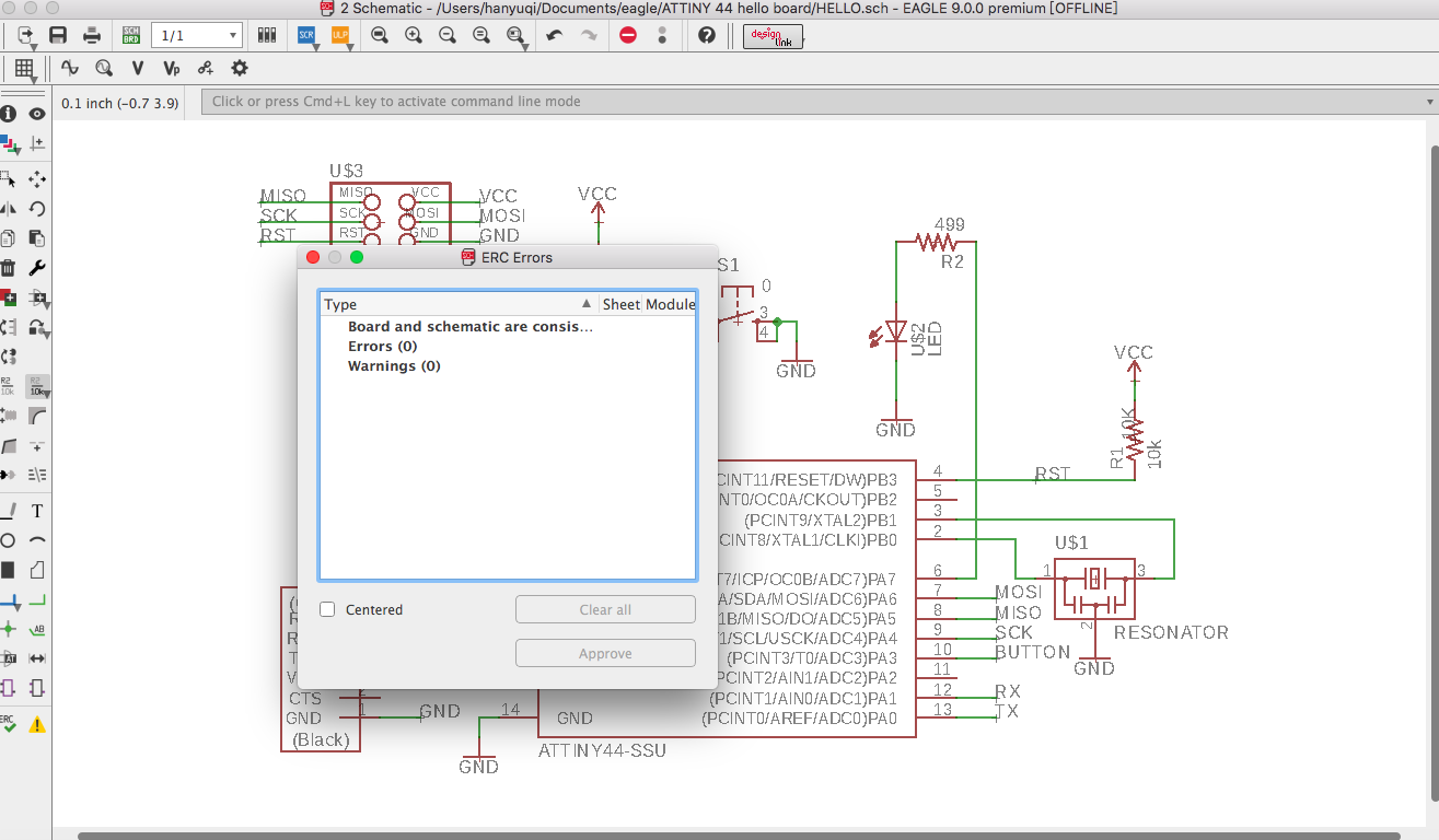 To check whether our board is correct, we can use two tools on EAGLE: ERC and DRC.