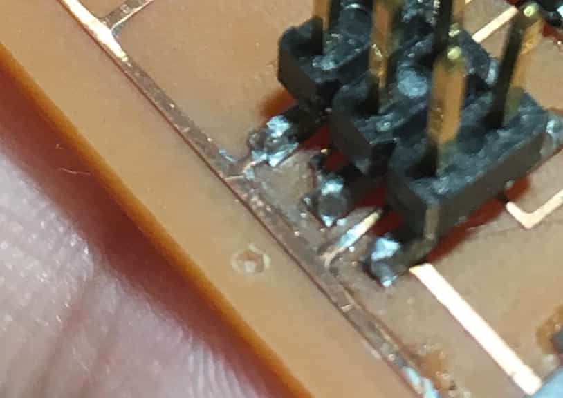 To distinguish the direction of the icsp port, I drilled a hole on the side of GND and VCC to remind me of that.