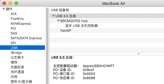 Second, connect the Fab ISP to your computer, and check the USB device to see if "Fab ISP" appears.