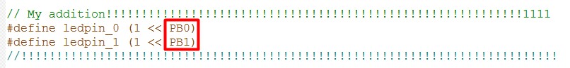 3.Now I had to define the LEDpin I will use frm the Attyni45 PIN configuration.