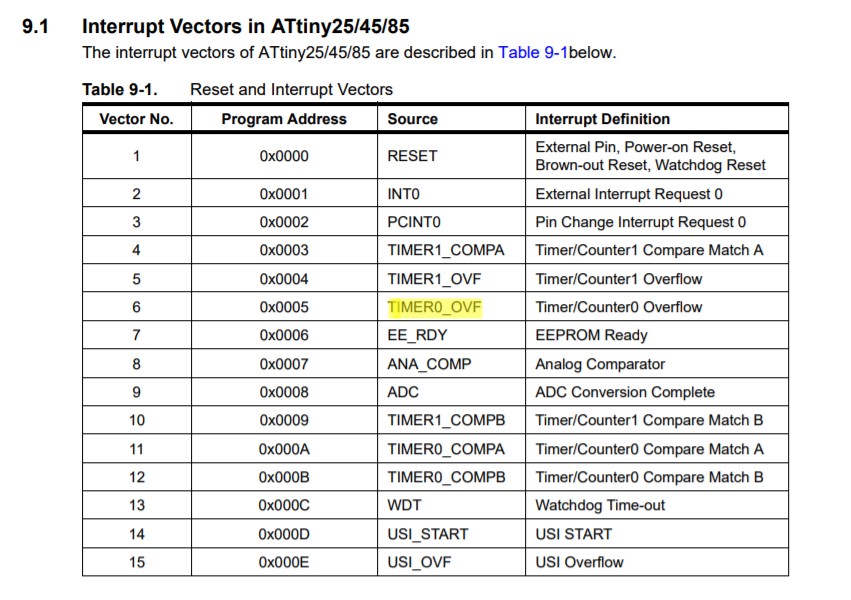 I used the microcontroller's datasheet to find an internal interruption to use in my code. I'm working with the TIMER0_OFV