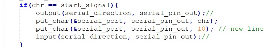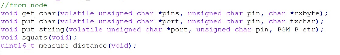 In order to make this board to function as NODE it needed to receive characters while connected to the brigde's network. I added three functions from original node's code: GET_CHAR, PUT_CHAR and PUT_STRING