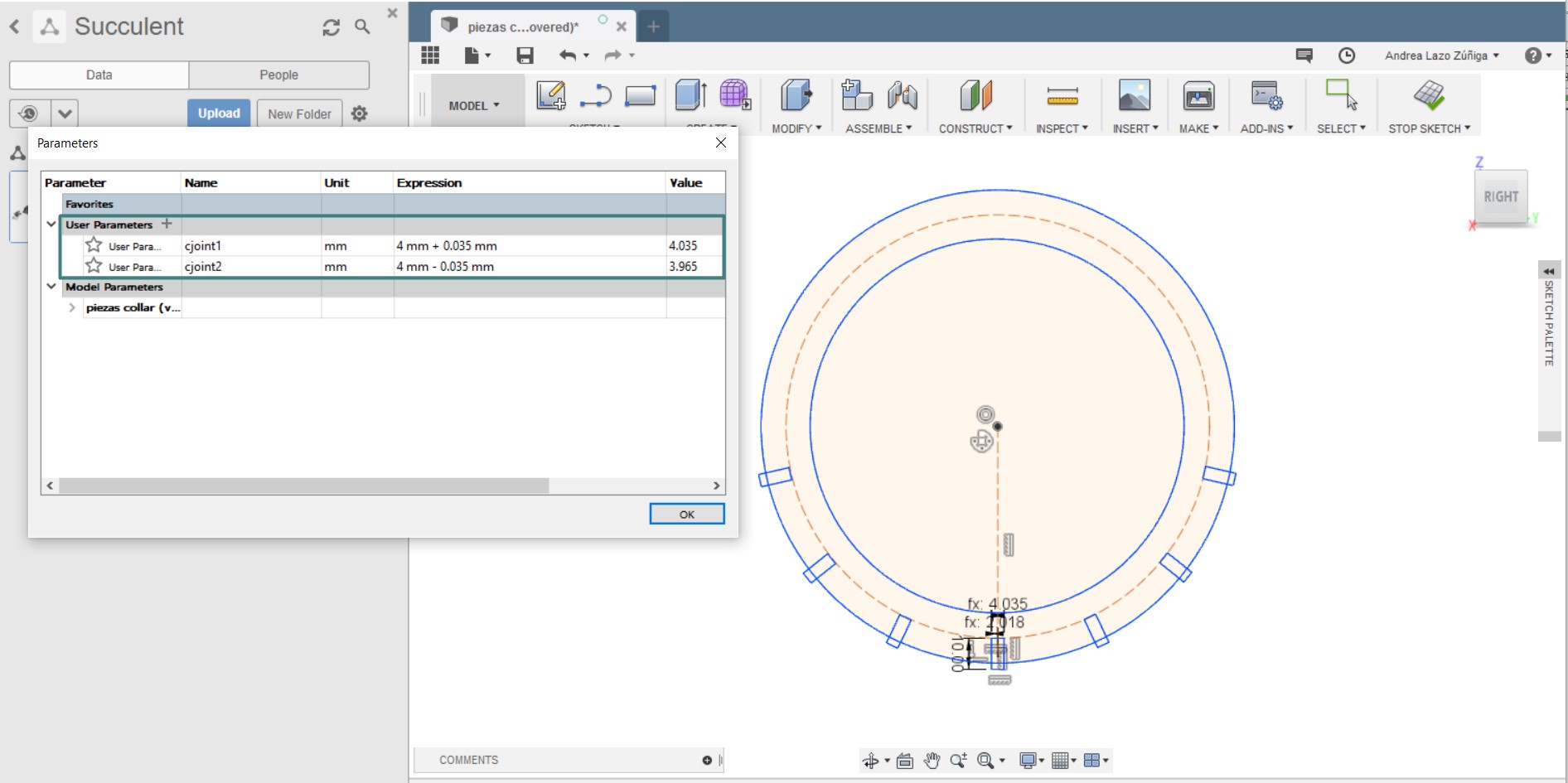 For this assignment I wanted to mix two of my favorite things: succulents and necklaces. I started with an sketch and then I tried Fusion 360 to make the it parametric.