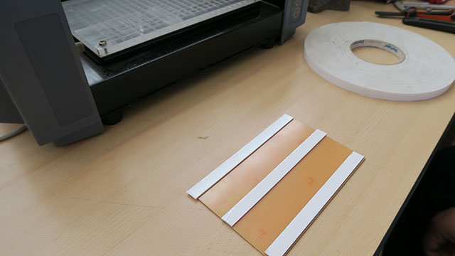 To start with the process I secure the board with double side tape to avoid from moving during the milling.