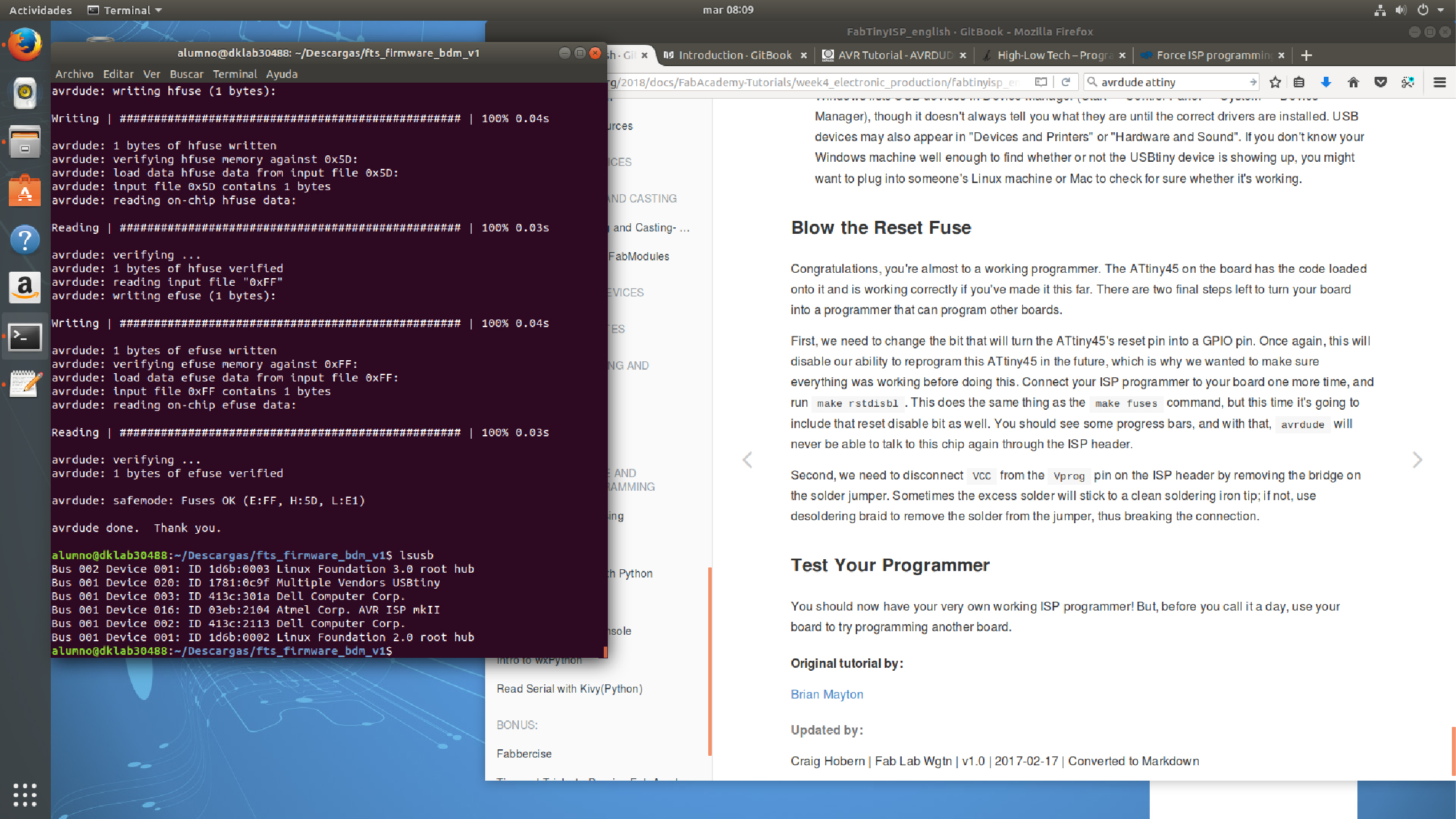 Even thought i followed all the tutorial steps, nothing seemed to work. Daniel, who works at Fab Lab Tesup and he´s also my Master Jedi, explain me that the ATtiny wasn´t communicating with the computer due to its