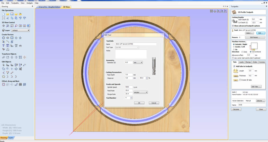 V-Carve Pro is a software for CNC routing, sign making and engraving. We use this software for generating the G-code for the Shopbot. While the software can import your designs from other designing programs, it also contains a complete all the tools needed to create your designs right in the program.