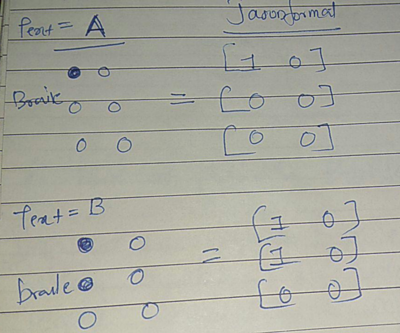To generate the G-Code which will be send to the firmware, python and G-Code generator was used. Each alphabets of the braille was stored into a 3x2 matrix and saved in json format.