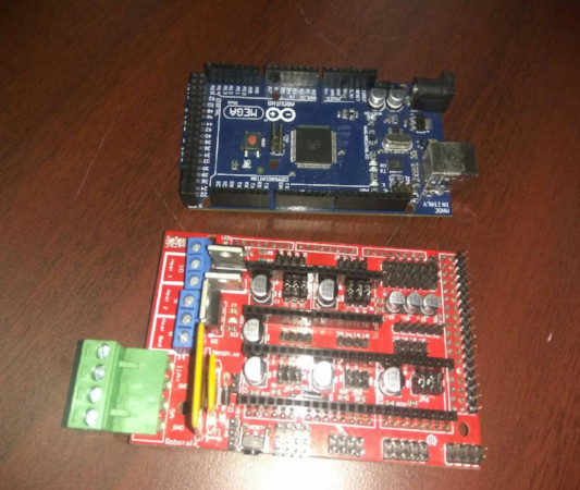 We used A4988 Stepper Driver, Ramps14 and Arduino Mega for actuating and automating the machine. Below image shows the Arduino Mega & the Ramps 14.