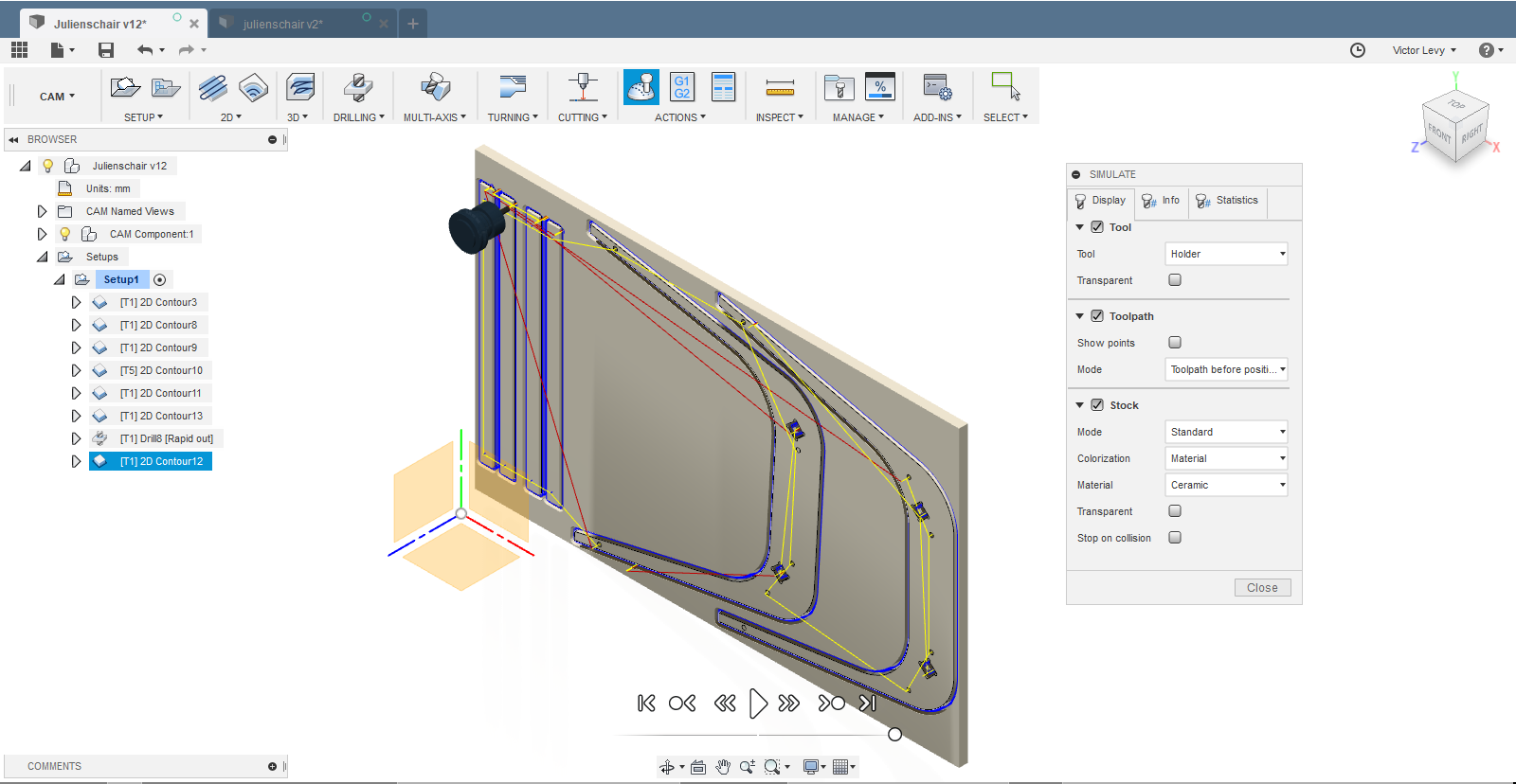 After that operation done,I made the last one with all the toolpath of the different parts of the chair.