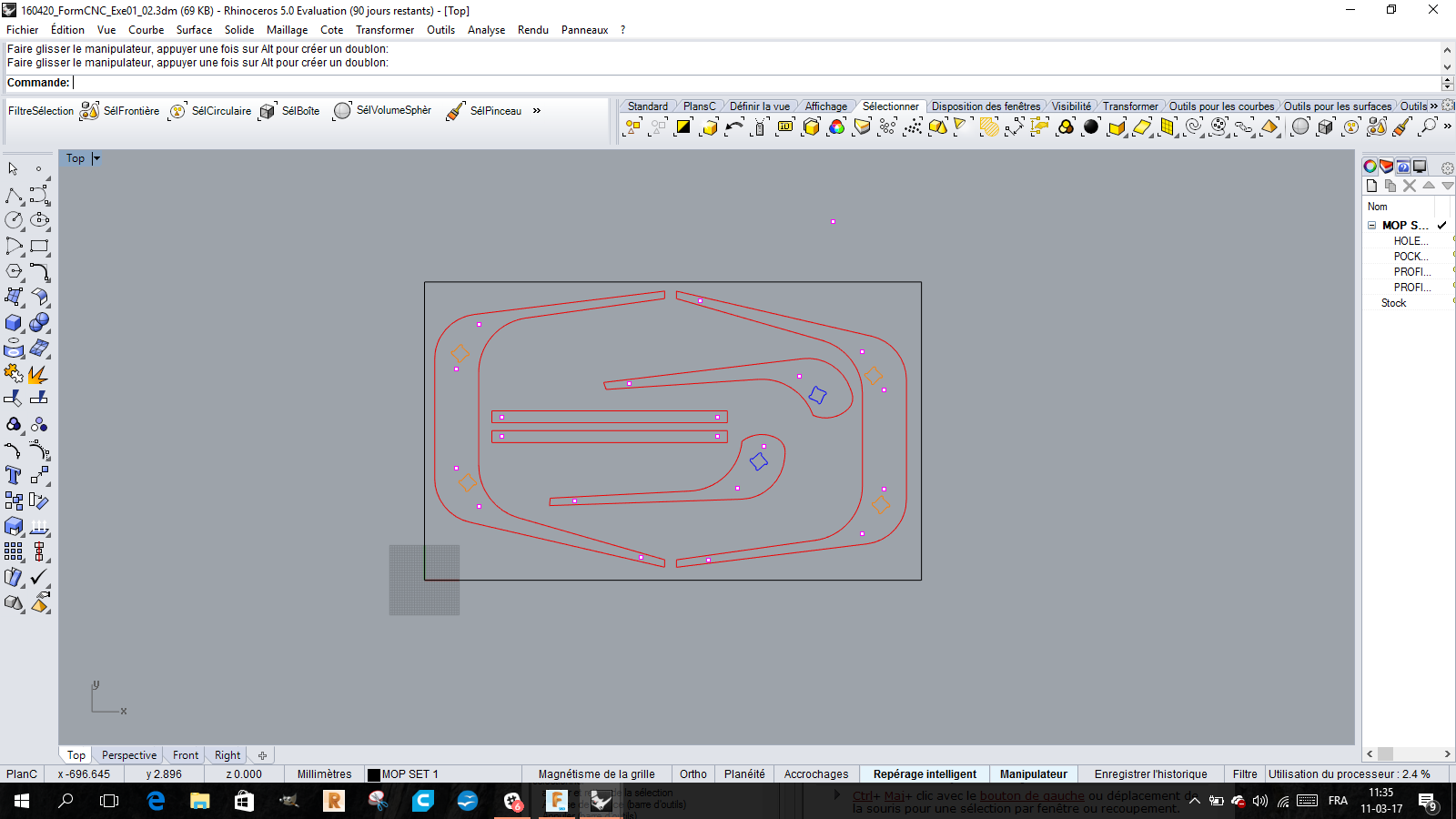 I did the gcode another time and tested every 2D cut and also the drilling by generating for each operation a different toolpath