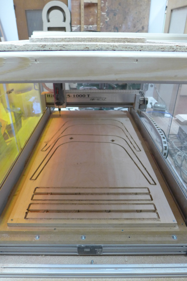 We will cut the parts over the entire depth of the Plywood.
