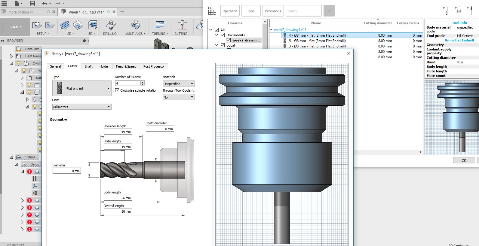 First step is to edit the tool to encode the diameter, the total length of the cutter, the flute.