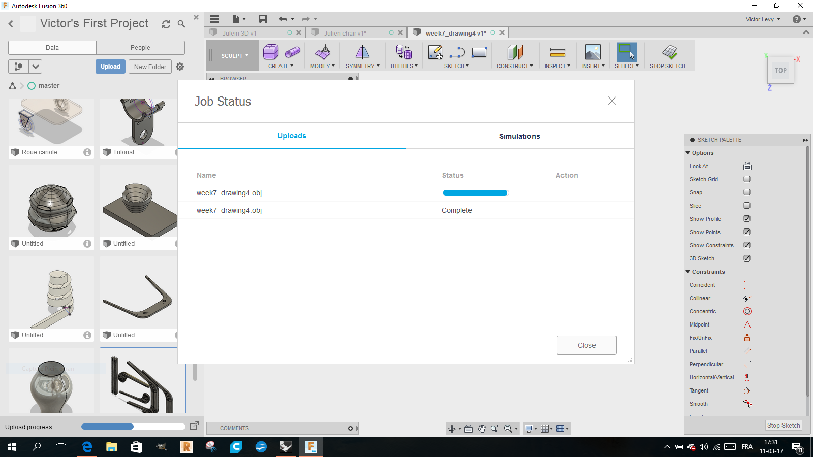 I started from the files we had, 2D dxf files that Julien left us.