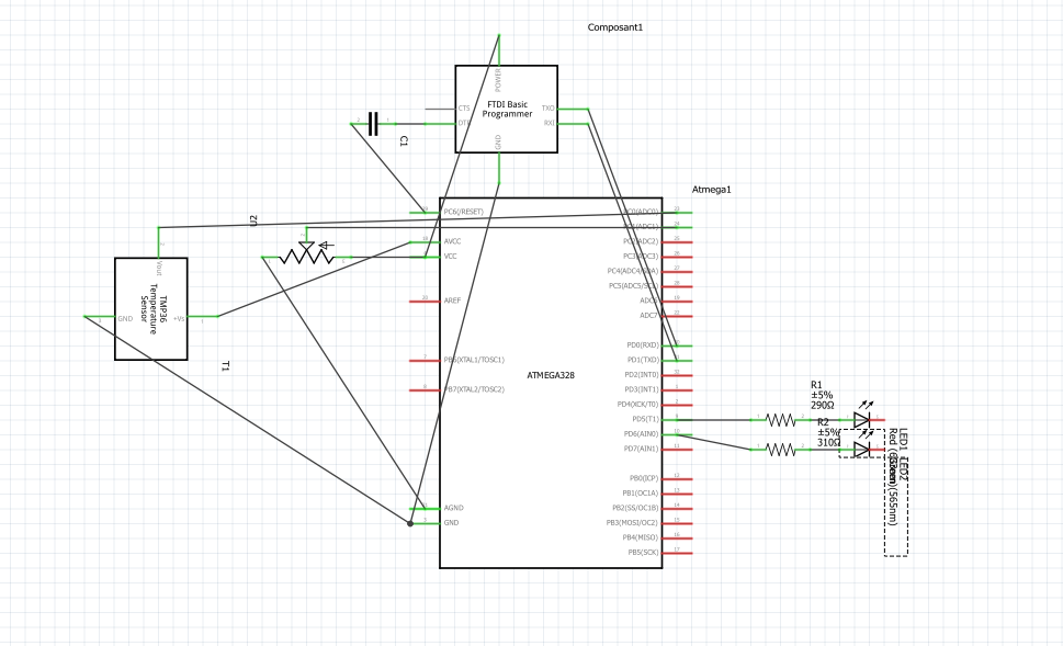 I started from a basic sketch I made to read the temperature and added a potentiometer on the analogic pin A1.