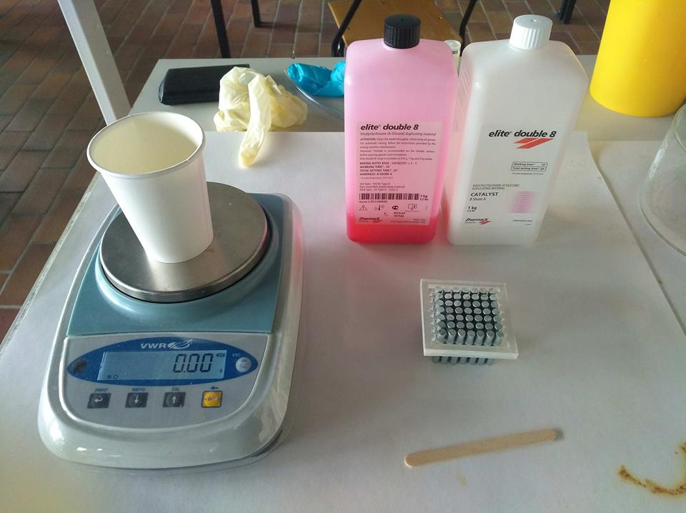 Once that was done, I entered the cylinders into the holes, leveled them, and then sealed the mold with paper.